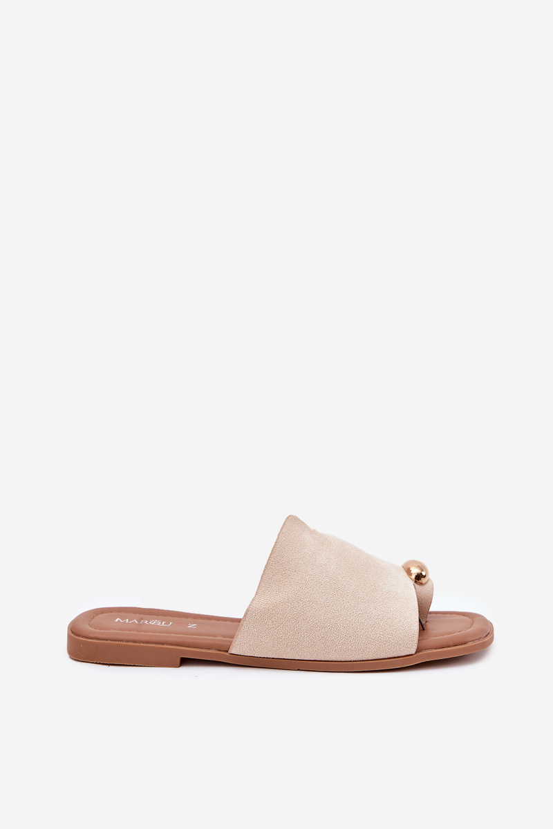 Damskie Klapki Płaski Obcas Złoty Detal Beżowe Ebilina