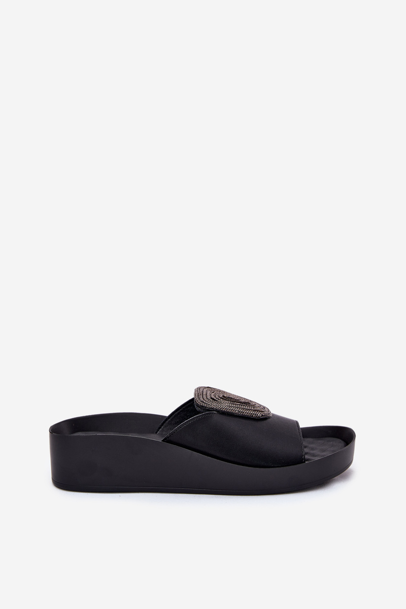 Damskie Klapki Skóra Naturalna Czarne KV51-028