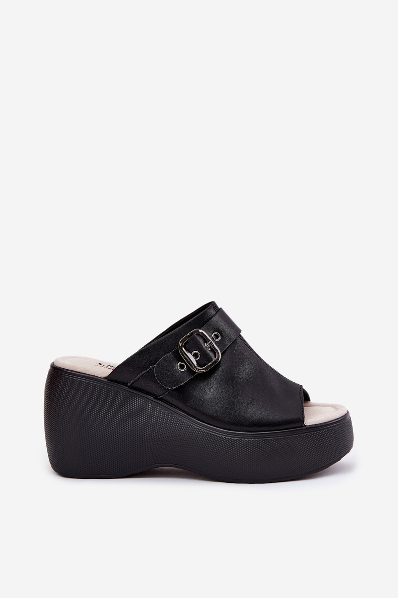 Klasyczne klapki o modnym fasonie pasują do wielu stylizacji! Idealne dla każdej kobiety ceniącej sobie komfort i wygodę na co dzień. Świetnie sprawdzą się w cieplejsze dni. Klapki od marki S.Barski. Wykonane z naturalnej skóry. Model ten wyróżnia koturn i platforma. Z przodu ozdobny pasek i klamra. Miękka, skórzana wkładka zapewni wygodę na każdym kroku. Stylowe i eleganckie, doskonale dopełnią wiele letnich stylizacji!