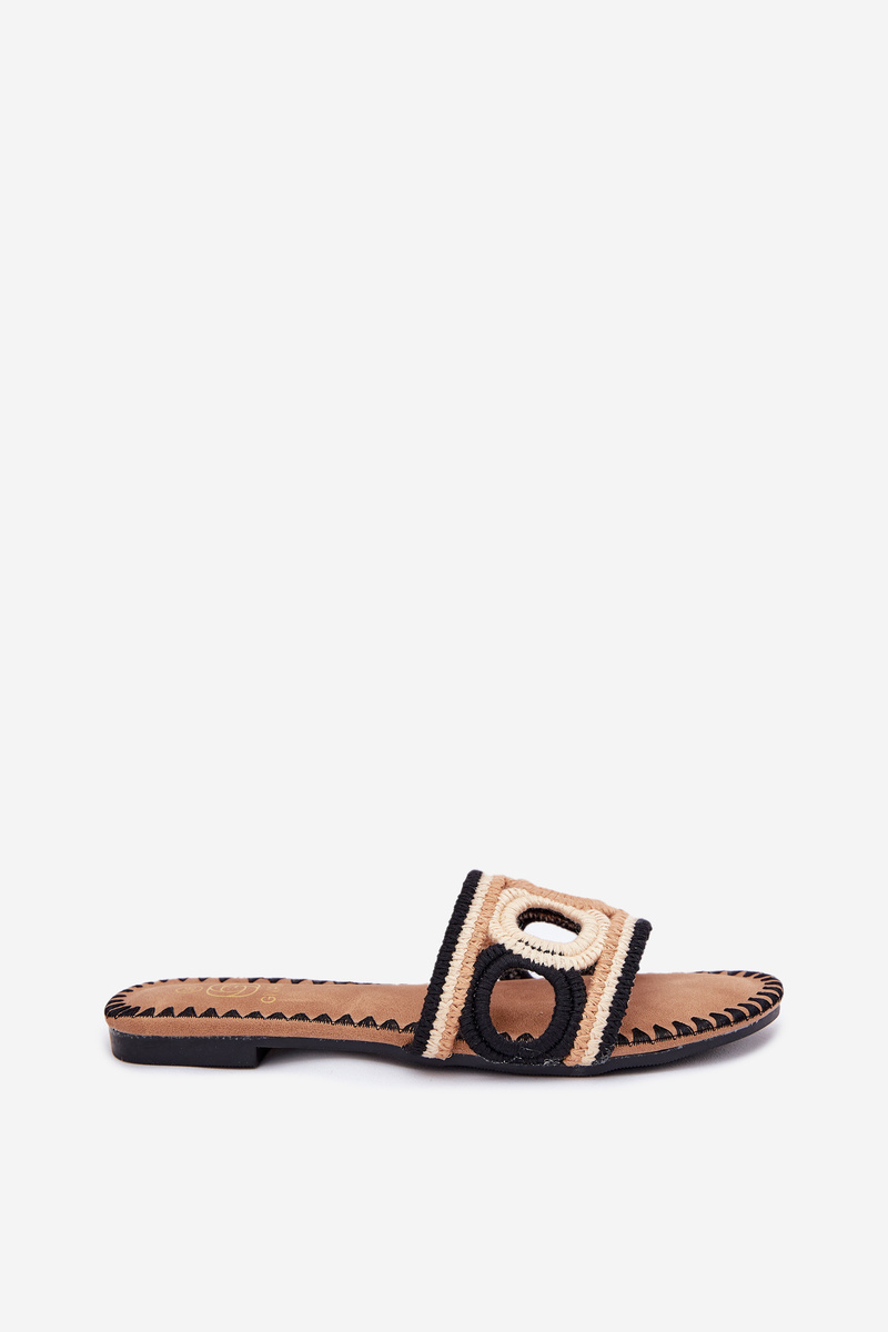 Damskie Klapki Szydełkowe Płaski Obcas Czarne Nirina