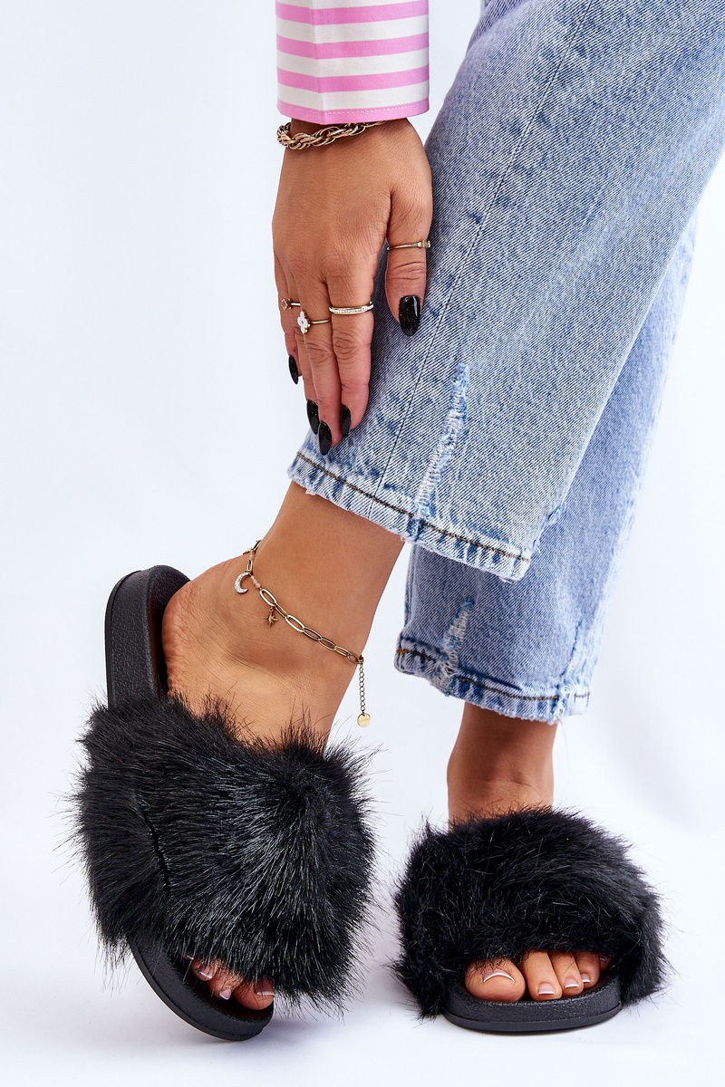 Damskie Klapki Z Futerkiem Czarne Kennet