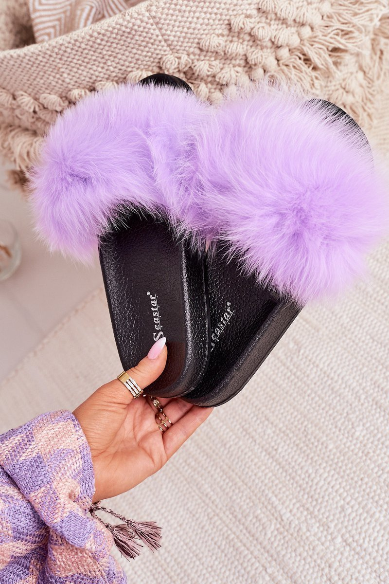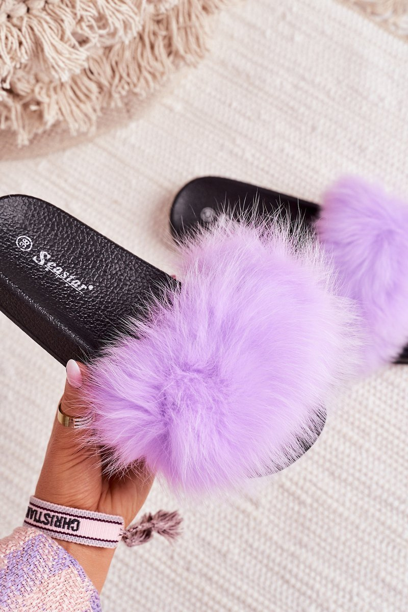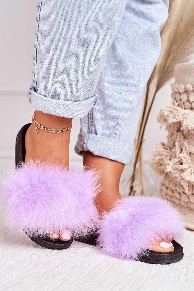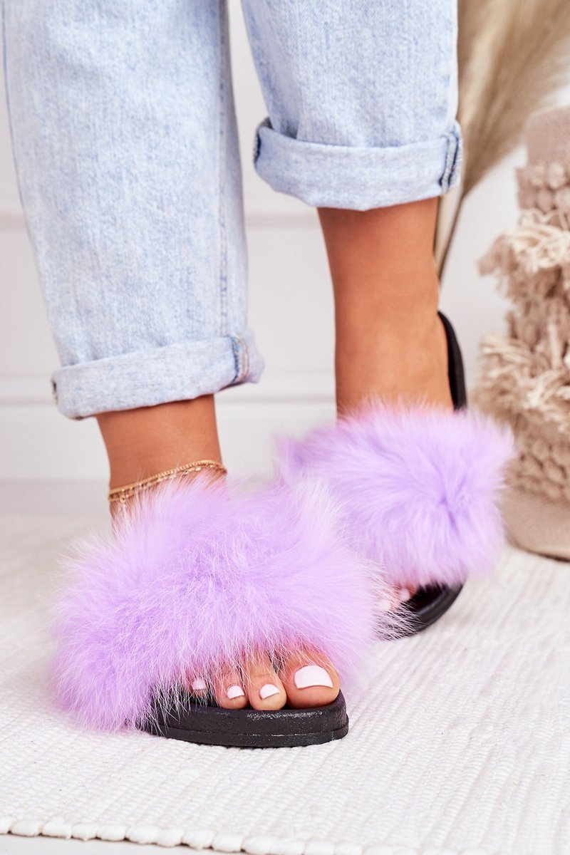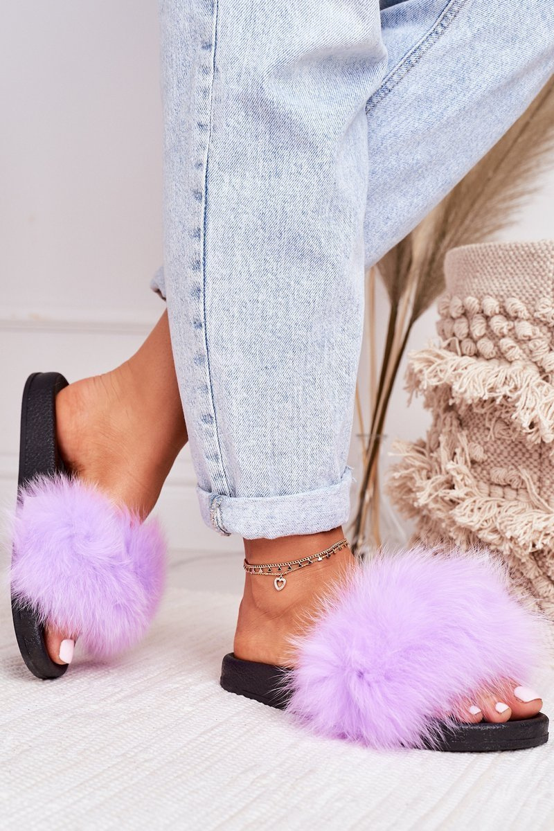 Damskie Klapki z Futerkiem Fioletowe Belmondo