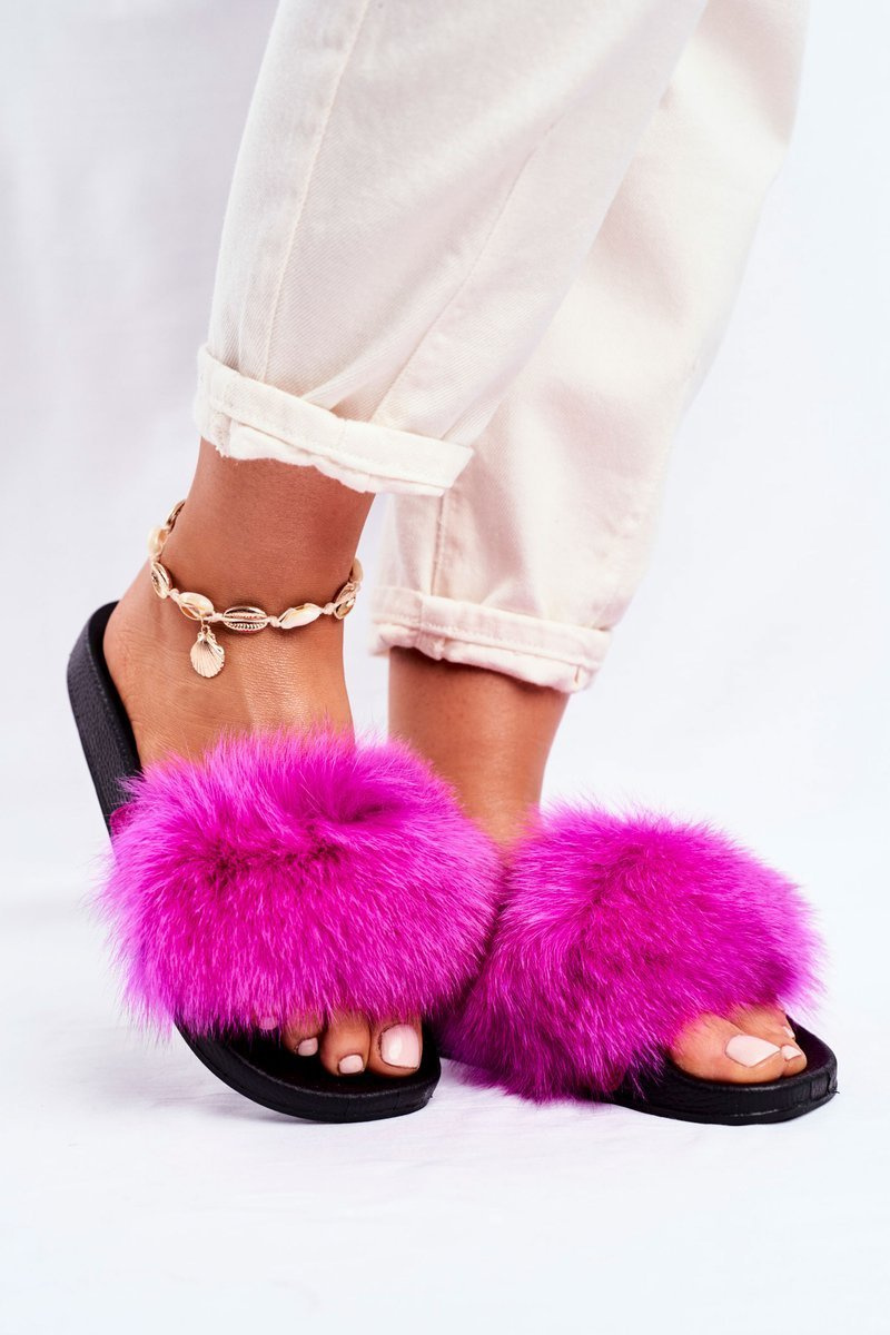 Damskie Klapki z Futerkiem Fuksja Belmondo