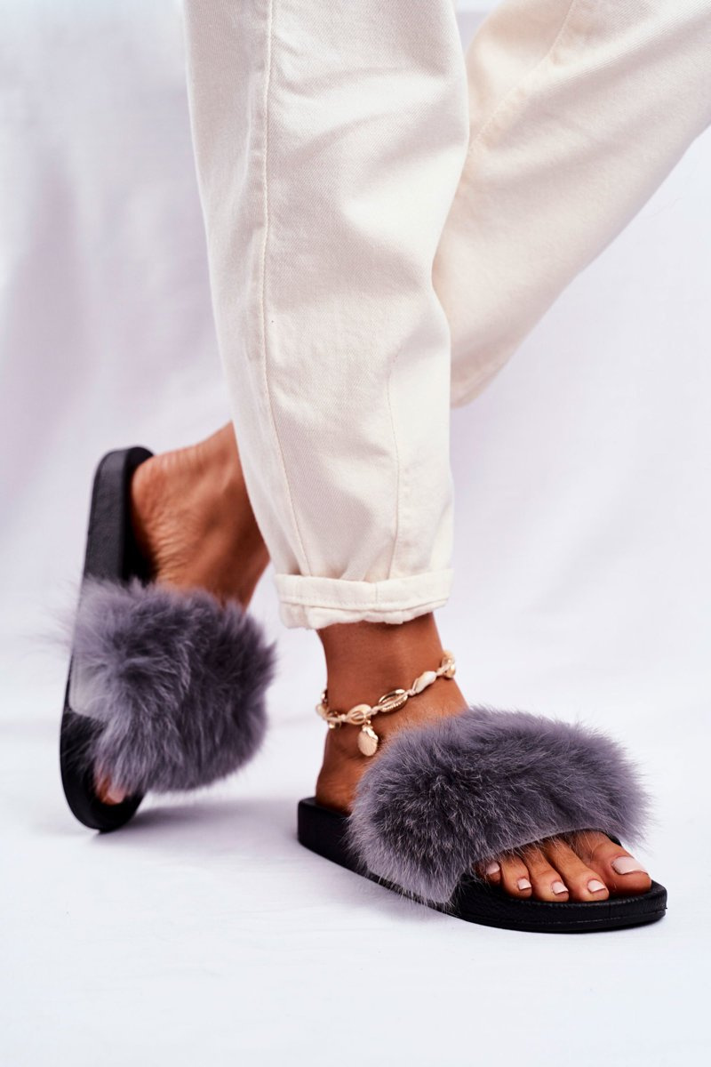 Opinie o Damskie Klapki z Futerkiem Szare Belmondo
