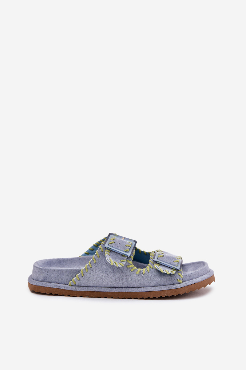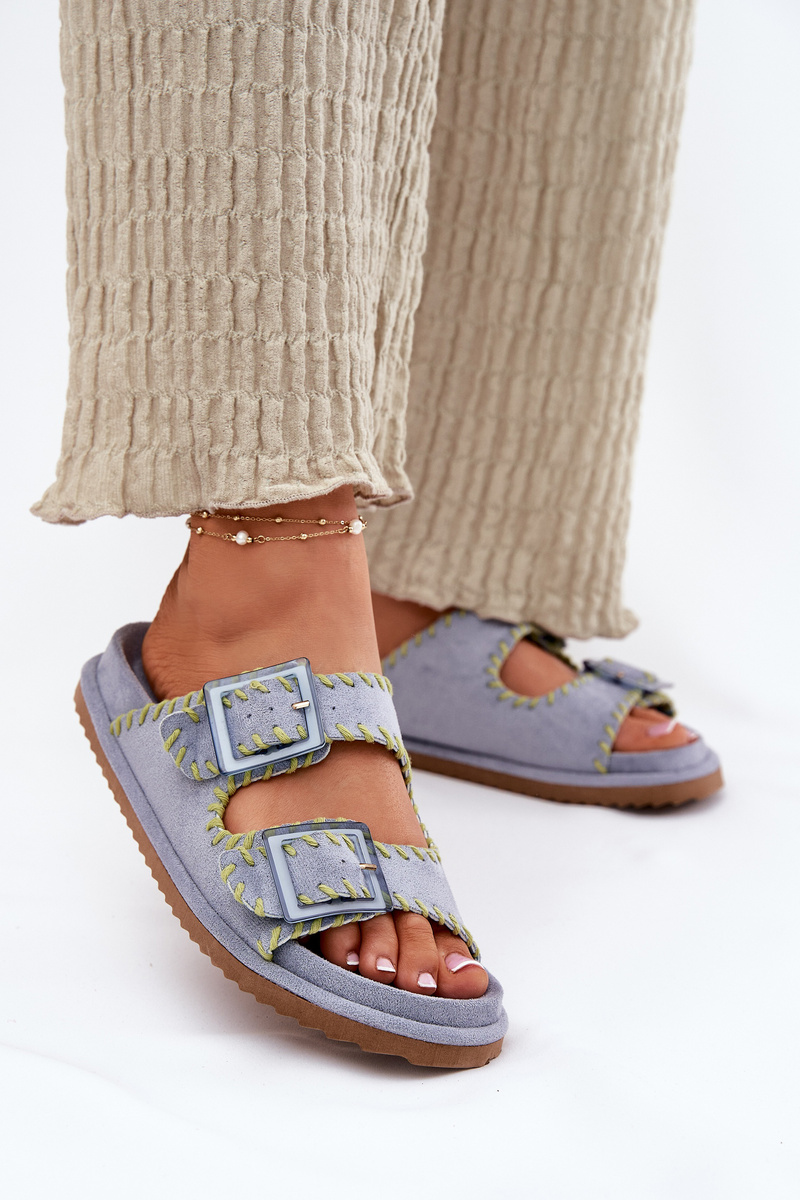 Damskie Klapki Z Ozdobnym Obszyciem I Klamrami Niebieskie Visley