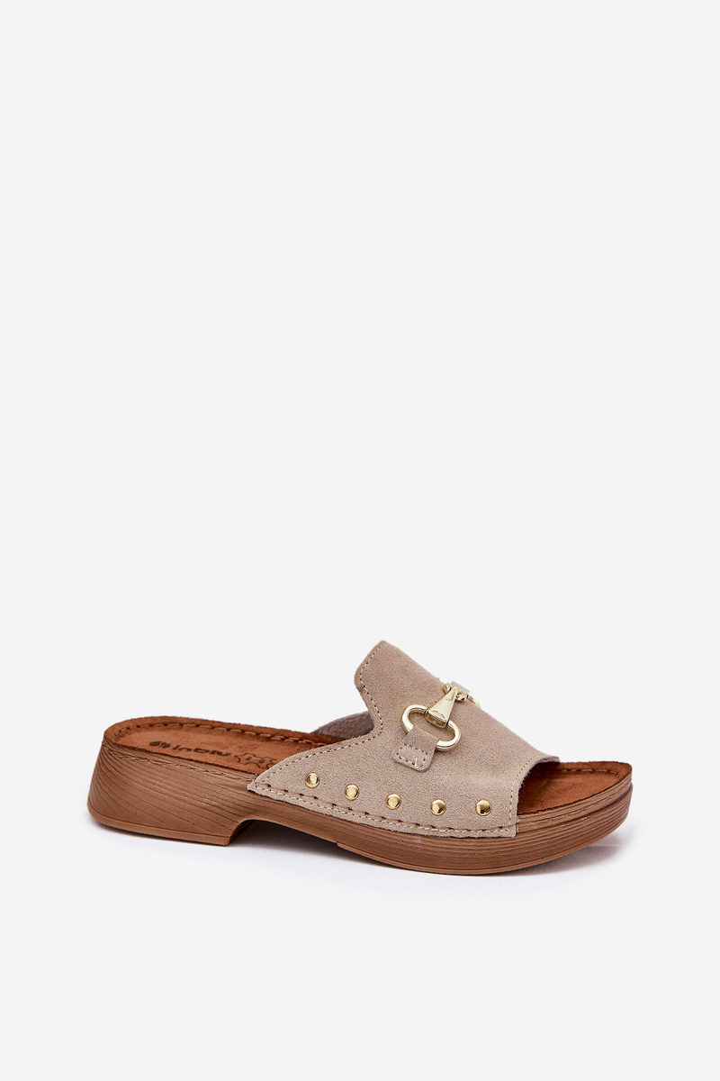 Damskie Klapki Zamszowe Beżowe Inblu TF0002KU