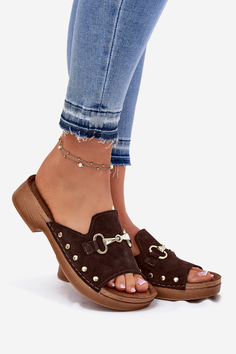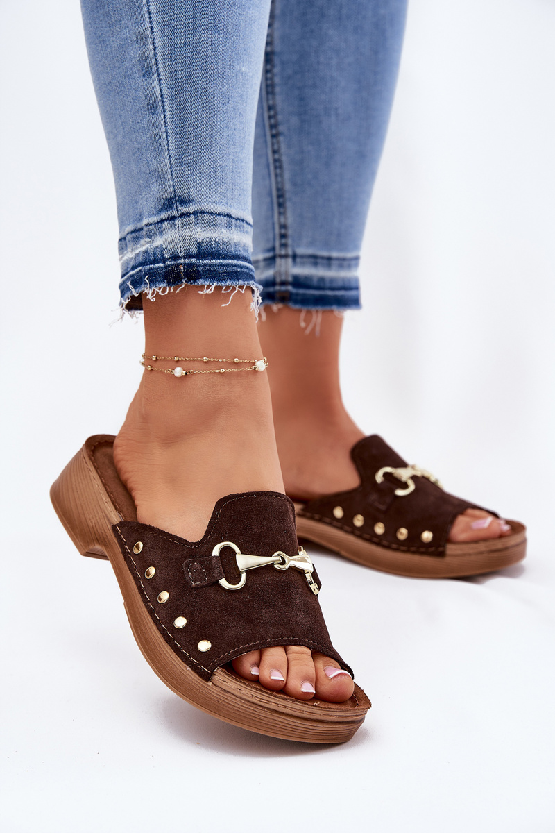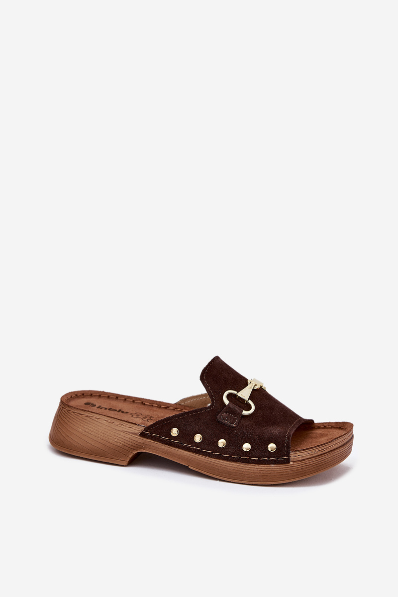 Damskie Klapki Zamszowe Brązowe Inblu TF0002KU