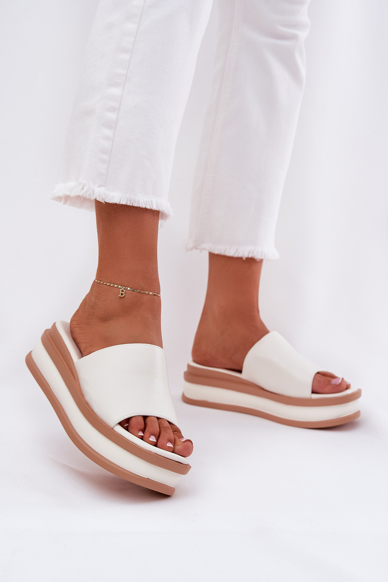 Damskie Klasyczne Klapki Na Koturnie I Platformie Białe Florenis