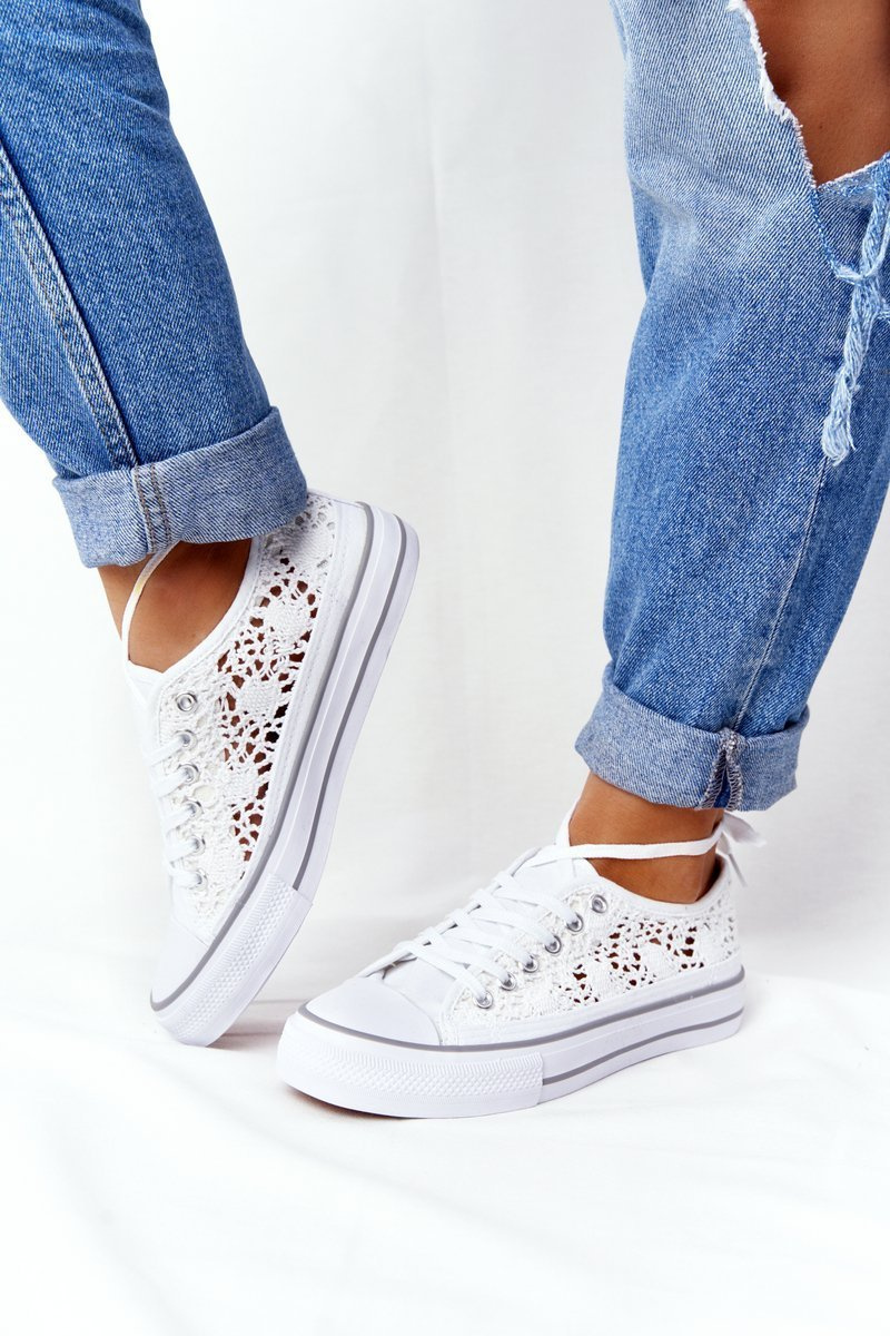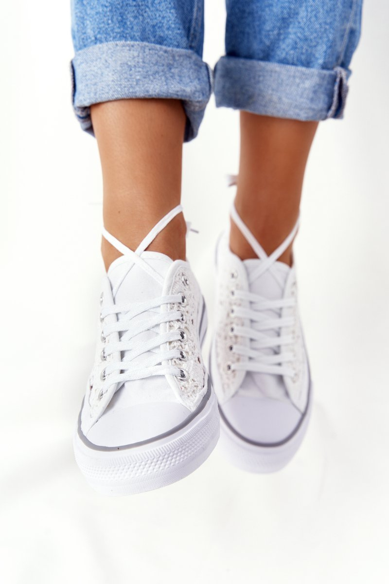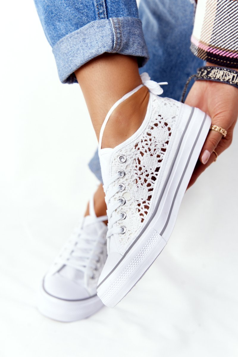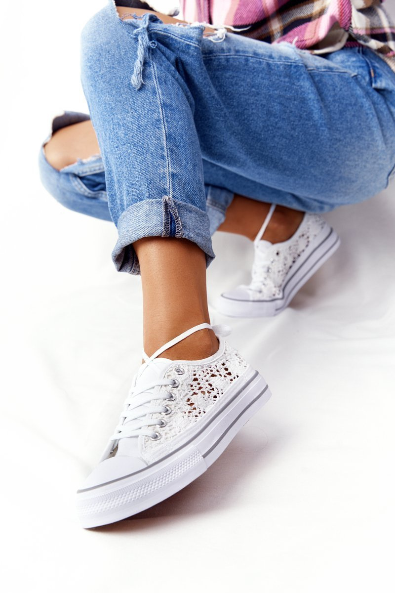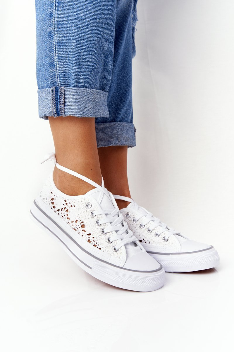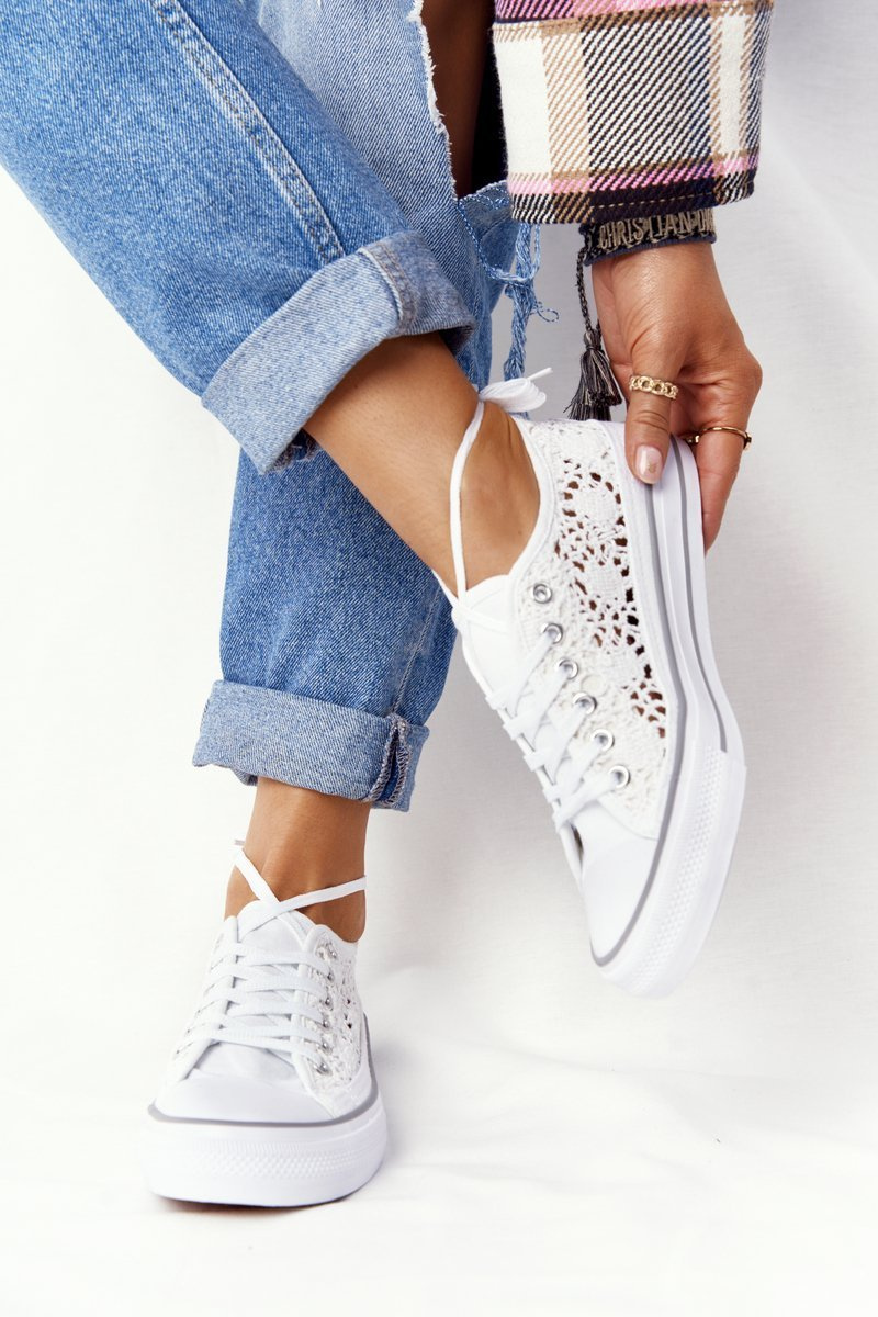 Damskie Koronkowe Trampki Białe Candice