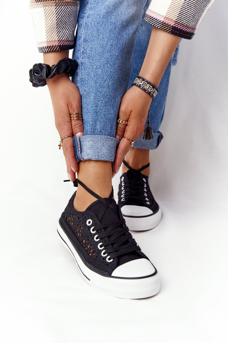 Wyjątkowe damskie trampki. Koronkowe tenisówki pasują do wielu letnich stylizacji. Buty dobrze dopasowują się do kształtu stopy, posiadają miękką, materiałową wkładkę oraz antypoślizgową podeszwę. Koniecznie sprawdź całą naszą kolekcję damskich trampek. Przy wyborze rozmiaru prosimy sugerować się tabelą rozmiarów.