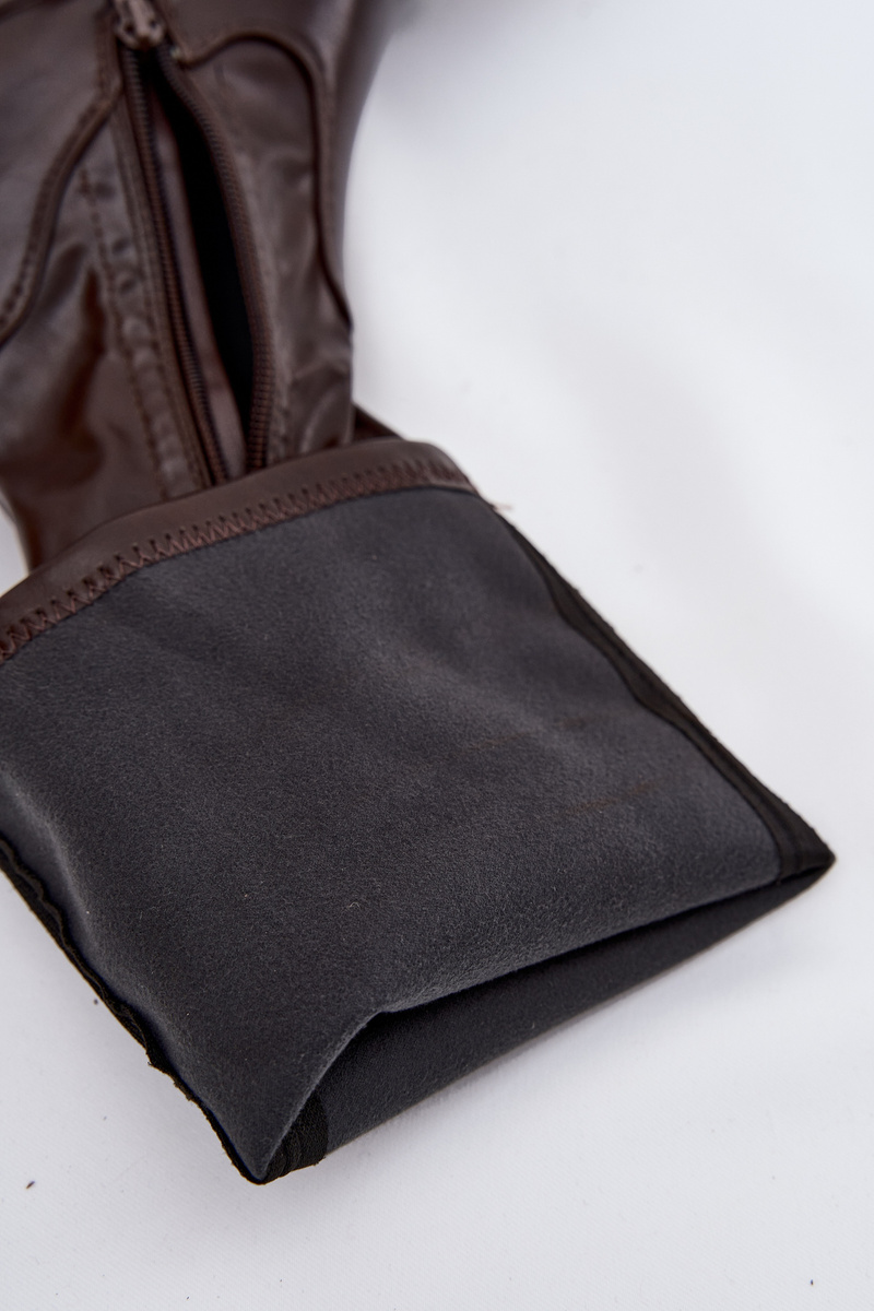 Damskie Kozaki Eko Skórzane Wsuwane Masywny Obcas Platforma Brązowe Florinne