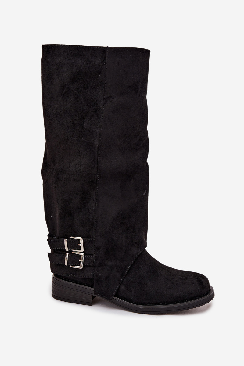 Damskie Kozaki Eko Zamsz Klamy Ocieplane Czarne Umbria