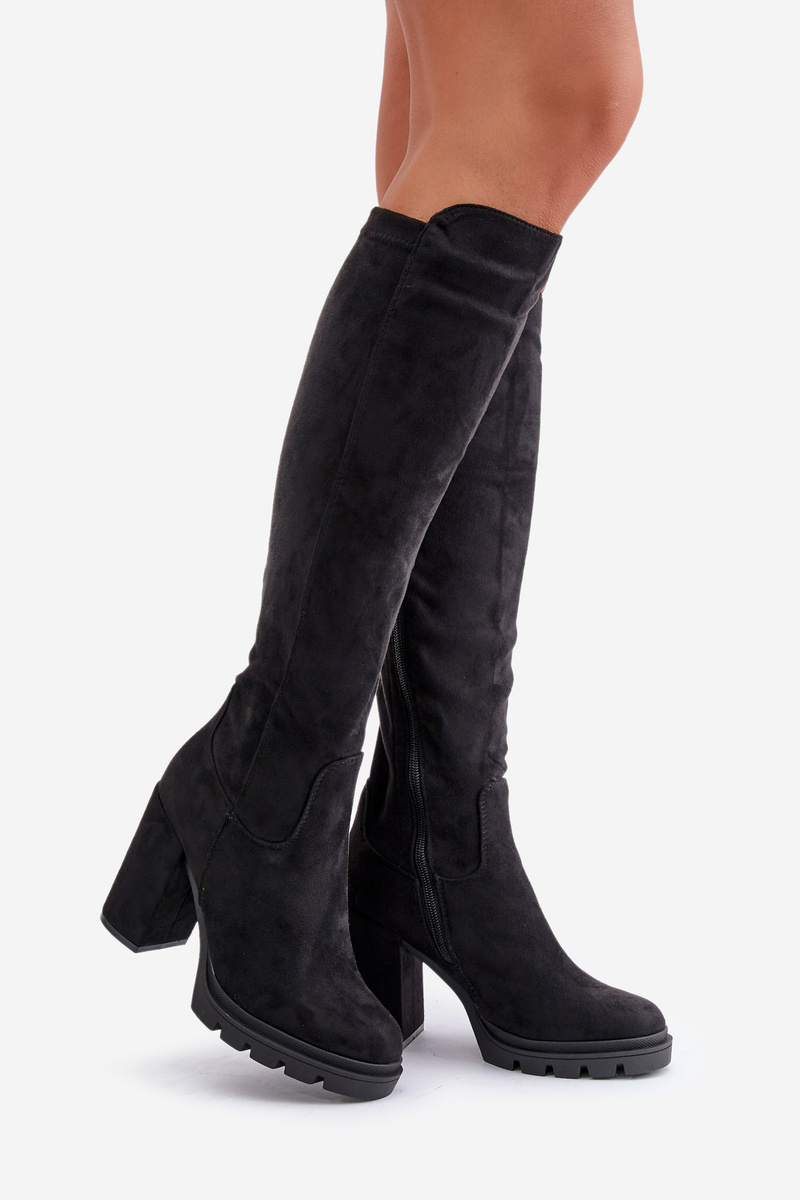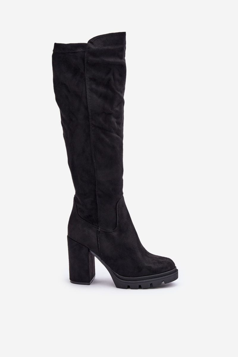 Damskie Kozaki Eko Zamsz Obcas Słupek Ocieplane Czarne Tirisha