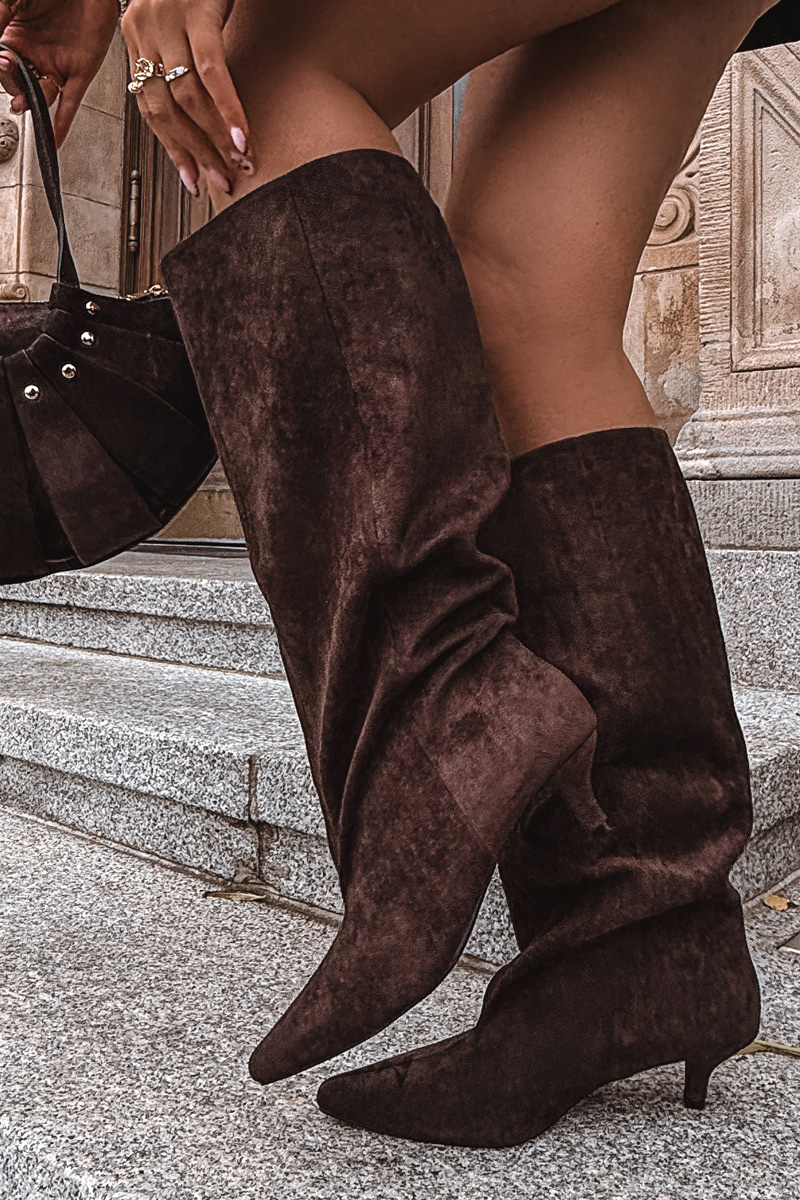 Damskie Kozaki Eko Zamszowe Na Obcasie Czekoladowe Pheona