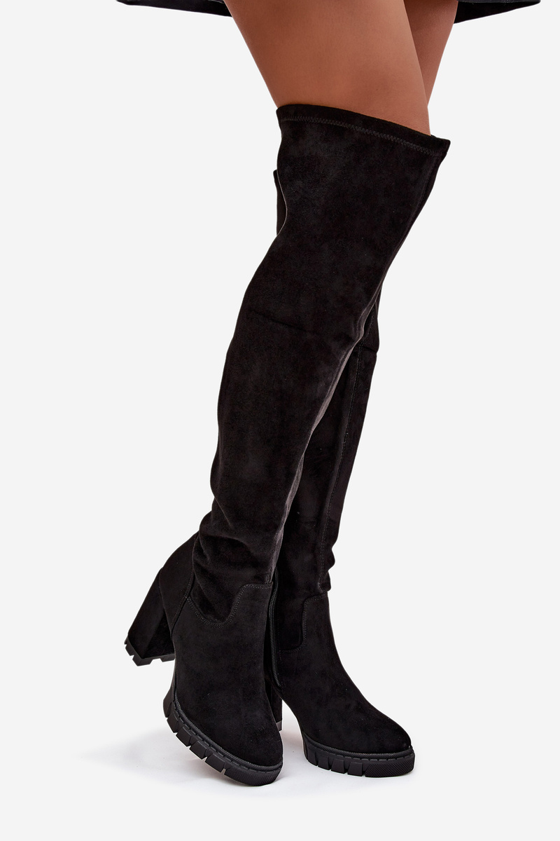 Damskie Kozaki Eko Zamszowe Za Kolano Na Słupku Czarne Tahlina