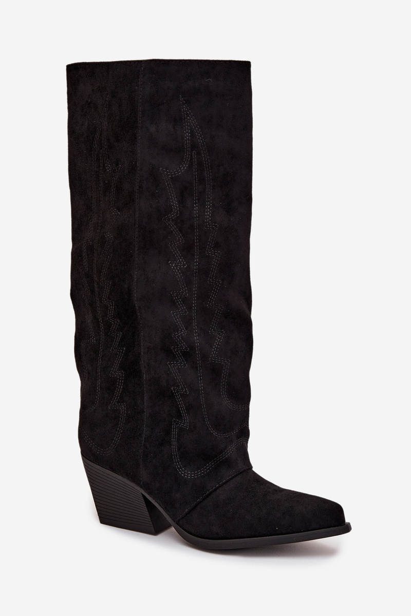 Damskie Kozaki Kowbojki Eko Zamszowe Na Zamek Czarne Isalina
