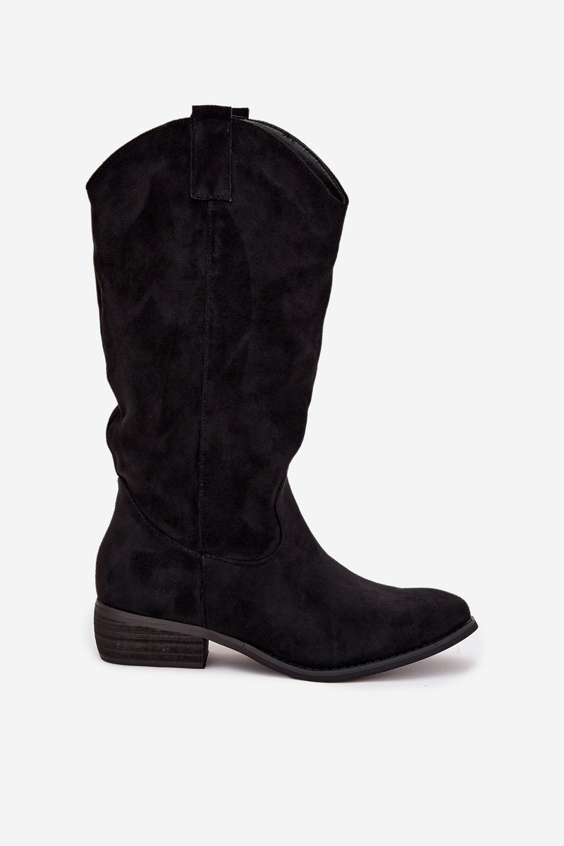 Damskie Kozaki Kowbojki Eko Zamszowe Niski Obcas Czarne Cherrie