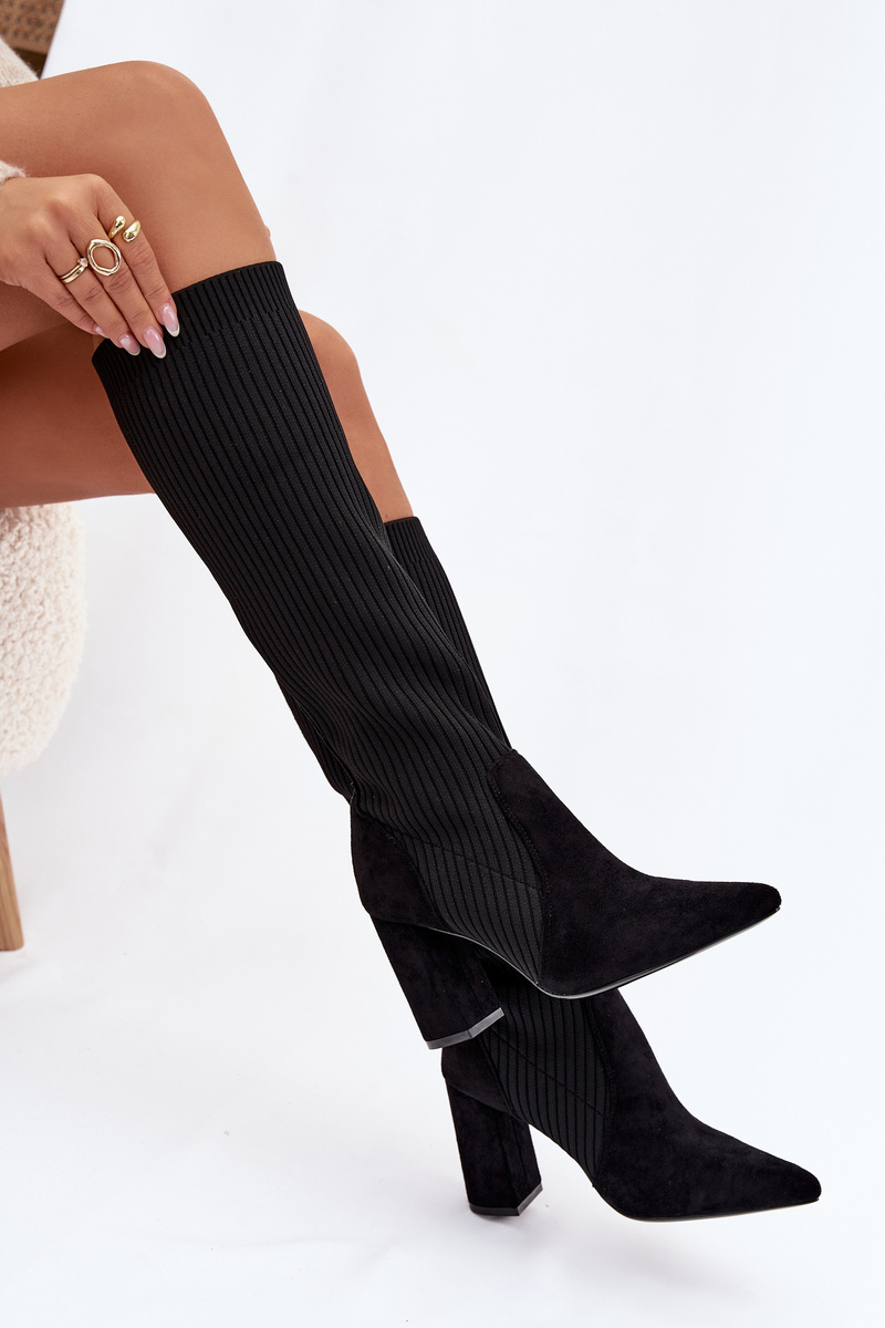 Damskie Kozaki Na Słupkowym Obcasie Czarne Yserine