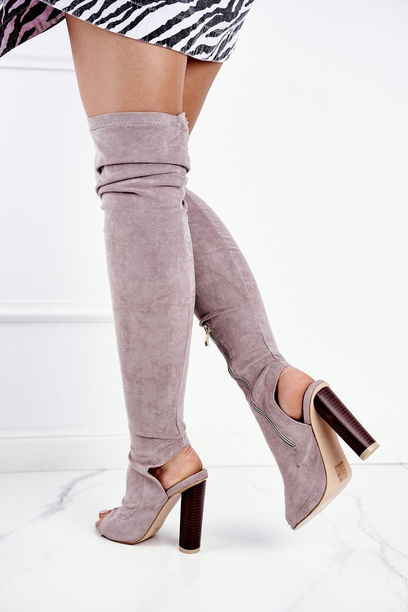 Damskie Kozaki Na Słupku Zamszowe Lu Boo Szare Aramis