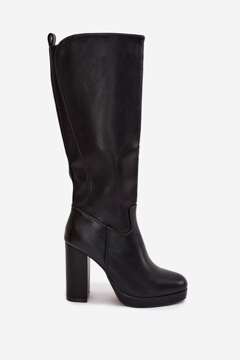 Damskie Kozaki Obcas Słupek Eko Skóra Do Kolana Czarne Thalina