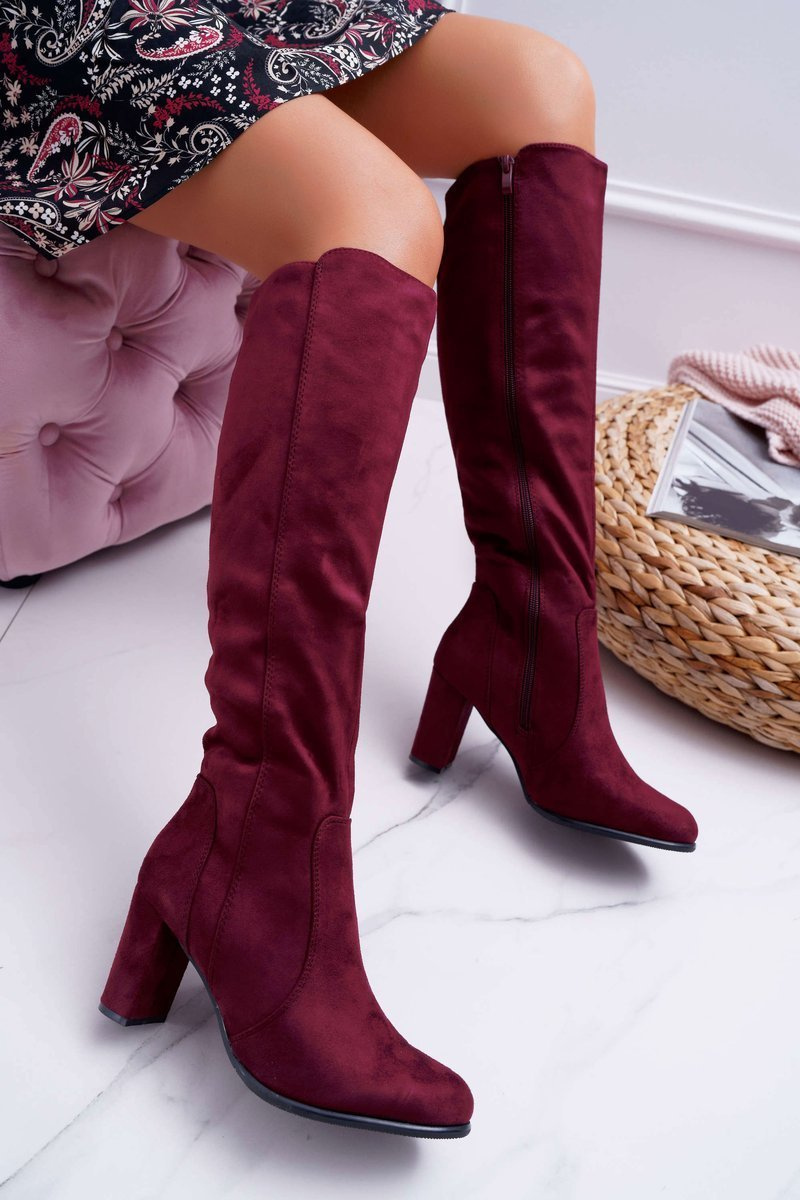 Damskie Kozaki Sergio Leone Zamszowe Bordowe KZ275