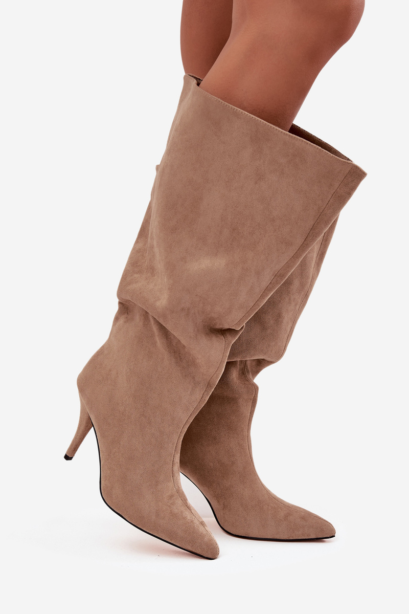Damskie Kozaki Wsuwane Eko Zamszowe Na Szpilce Beżowe Noretta