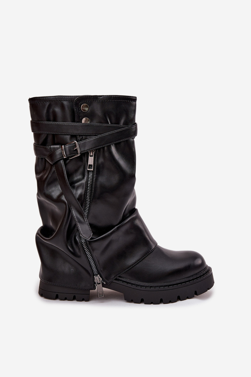Damskie Kozaki Wywinięta Cholewka Do Połowy Łydki Pasek Czarne Darisa