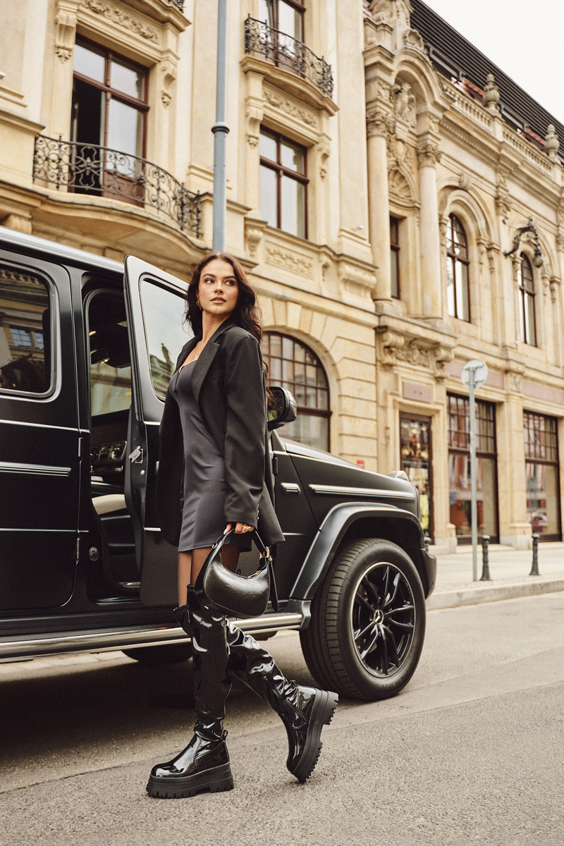 Kozaki na płaskim obcasie dopasujesz do wielu stylizacji. Modne, a zarazem komfortowe w użytkowaniu. Płaski obcas zapewni stabilność na każdym kroku, a podeszwa ochroni przed zimnym podłożem. Musisz je mieć w swojej szafie ! Wykonane z lakierowanej eko skóry. Cholewka sięga za kolano. Noski zaokrąglone. Osadzone na masywnej platformie. Model wsuwany z dodatkowym zapięciem na zamek. Ocieplane kocem obuwniczym wyłącznie na poziomie stopy. Doskonałe do spódnic i sukienek.