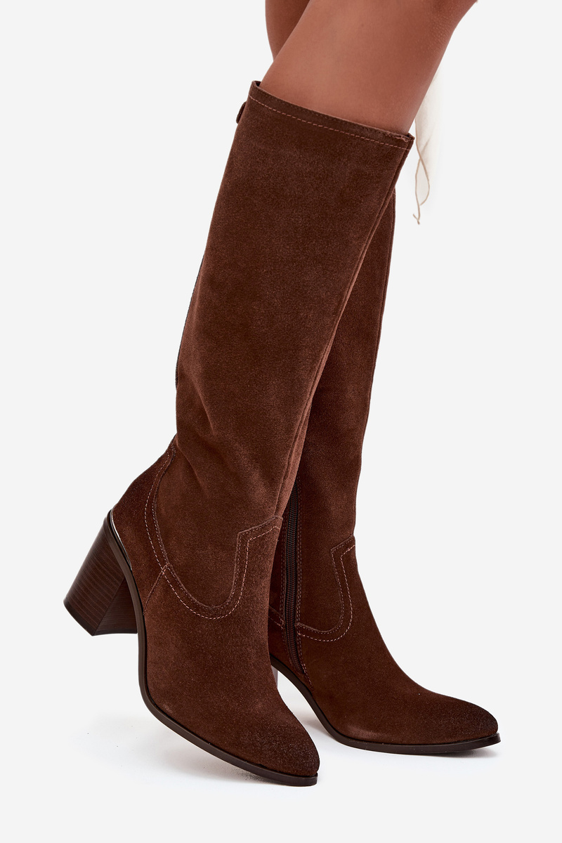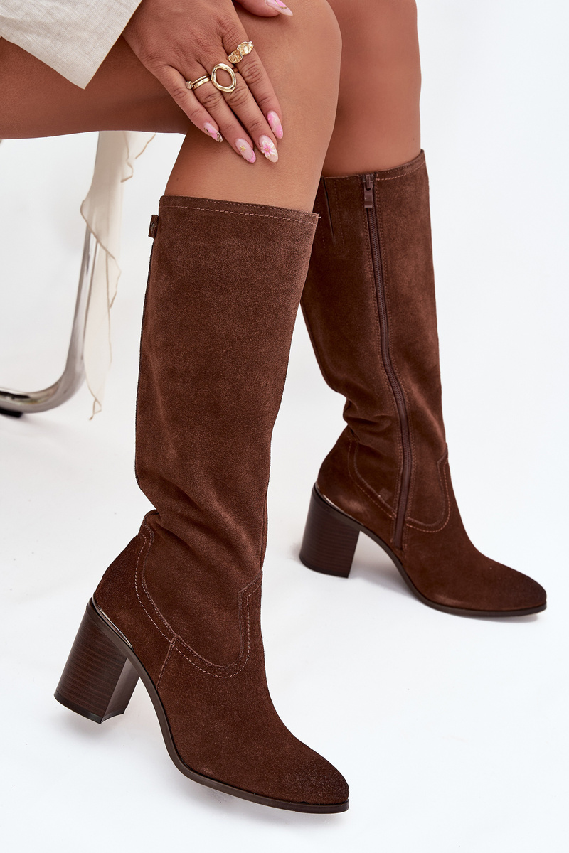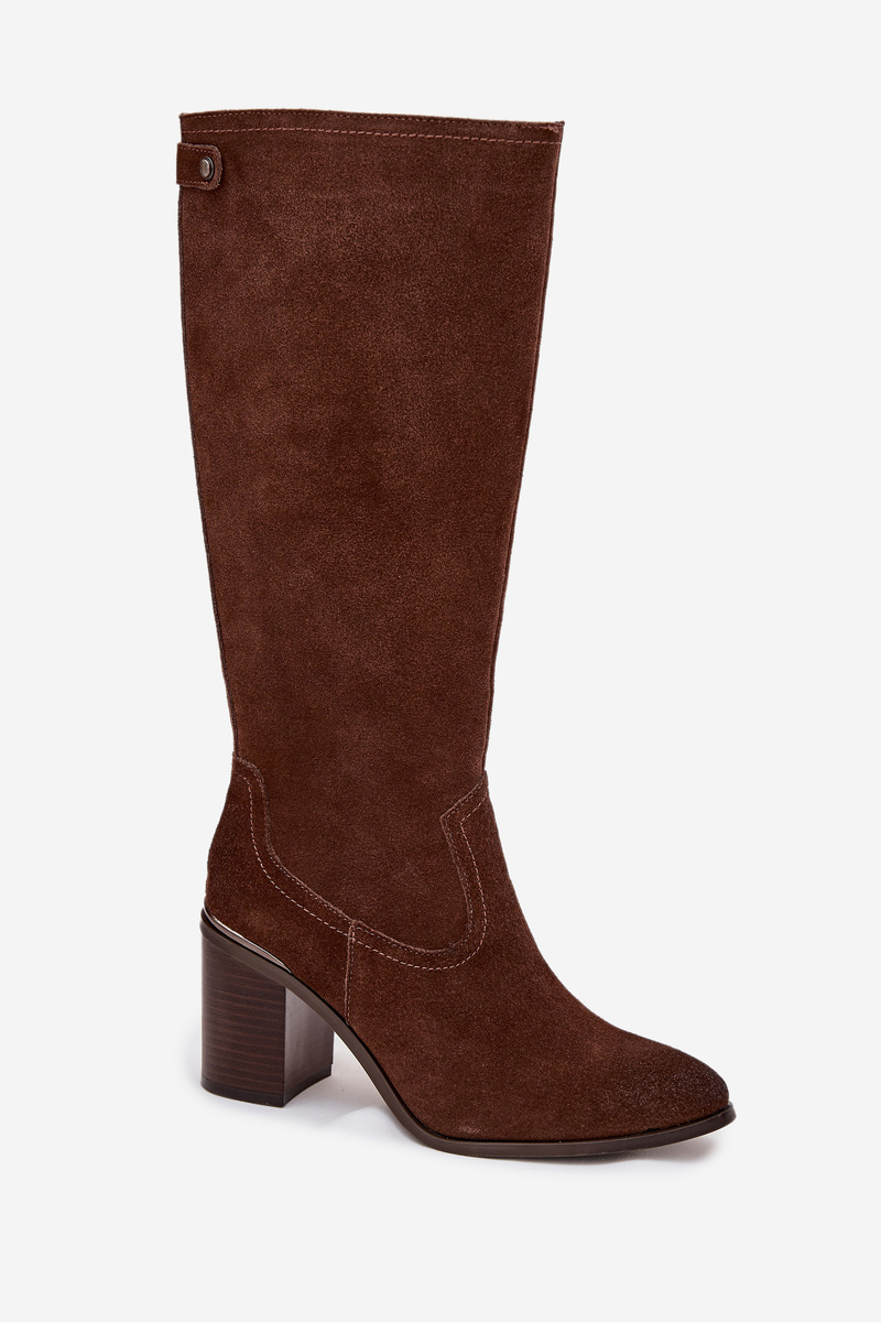 Damskie Kozaki Zamszowe Ocieplane Na Słupku Brązowe Sergio Leone KZ25668-S
