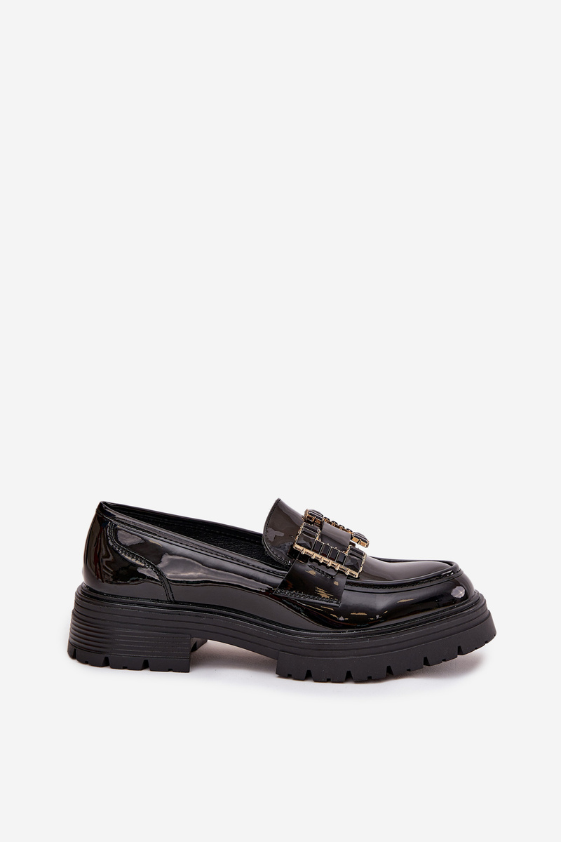 Damskie Lakierowane Eko Skórzane Mokasyny Z Ozdobą Czarne Ysandra