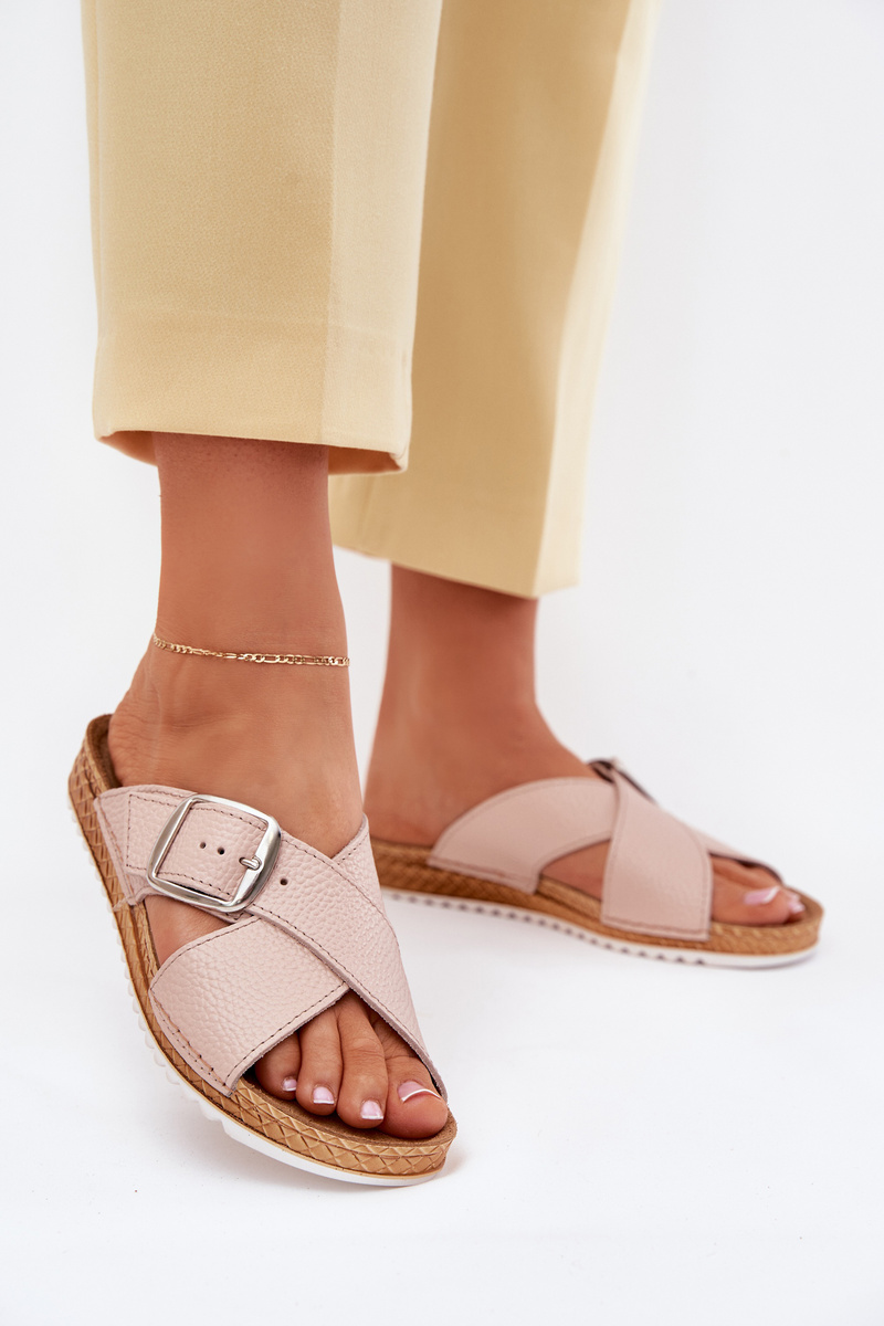 Damskie Lekkie Klapki Skóra Klamra Różowe Inblu VO0004GU