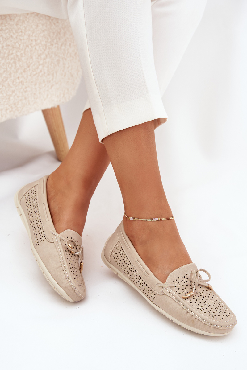 Damskie Mokasyny Ażurowy Wzór Wiązanie Beżowe Mirisa