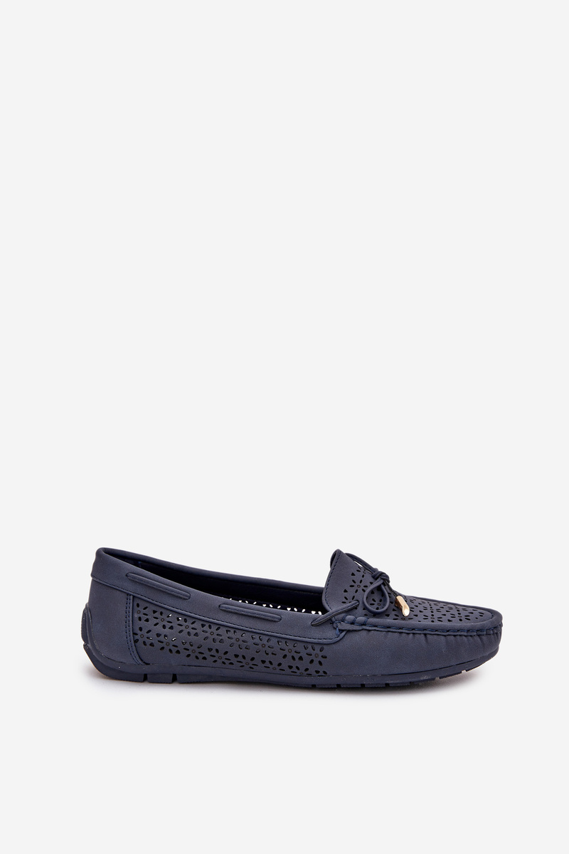Damskie Mokasyny Ażurowy Wzór Wiązanie Granatowe Mirisa