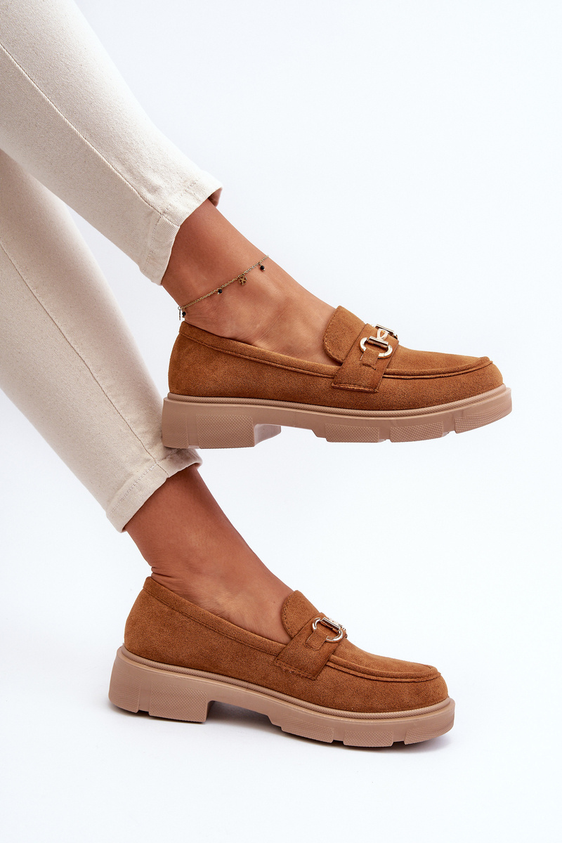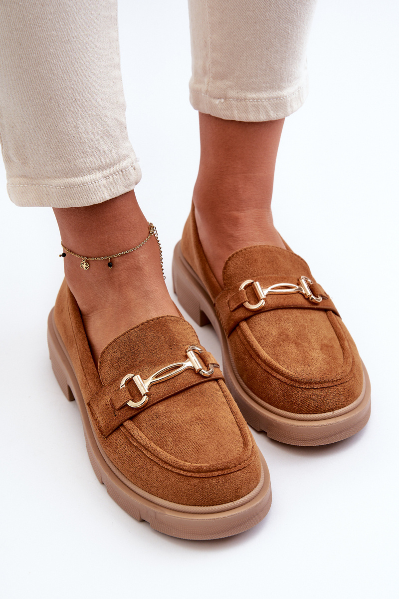 Damskie Mokasyny Eko Zamszowe Złota Ozdoba Camel Lighas F003