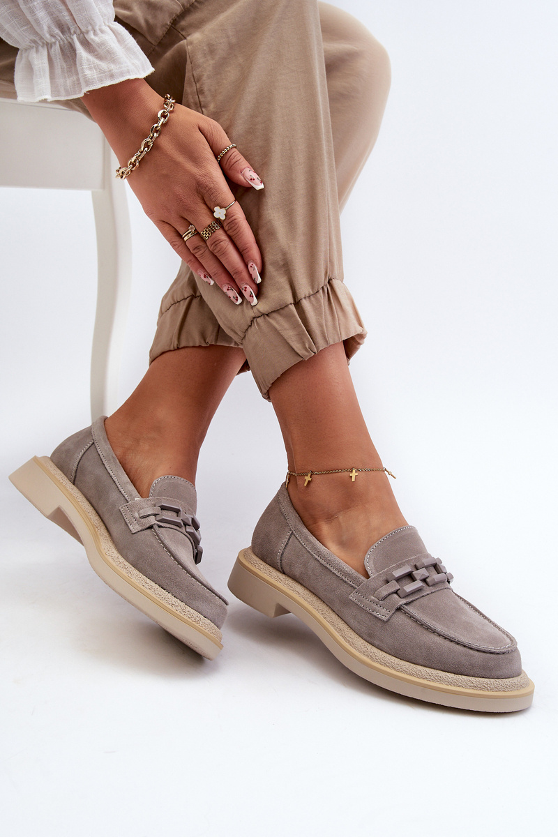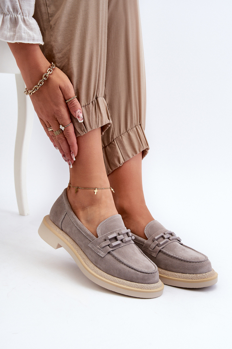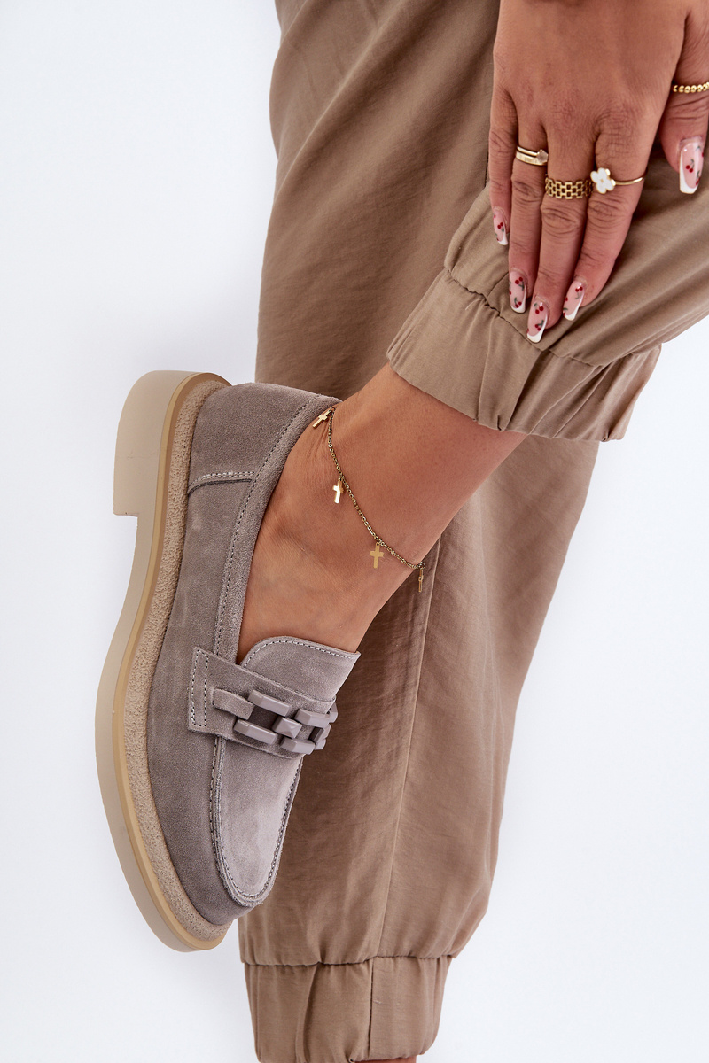 Damskie Mokasyny Na Płaskim Obcasie Z Ozdobą Zamszowe Szare D&A TW101