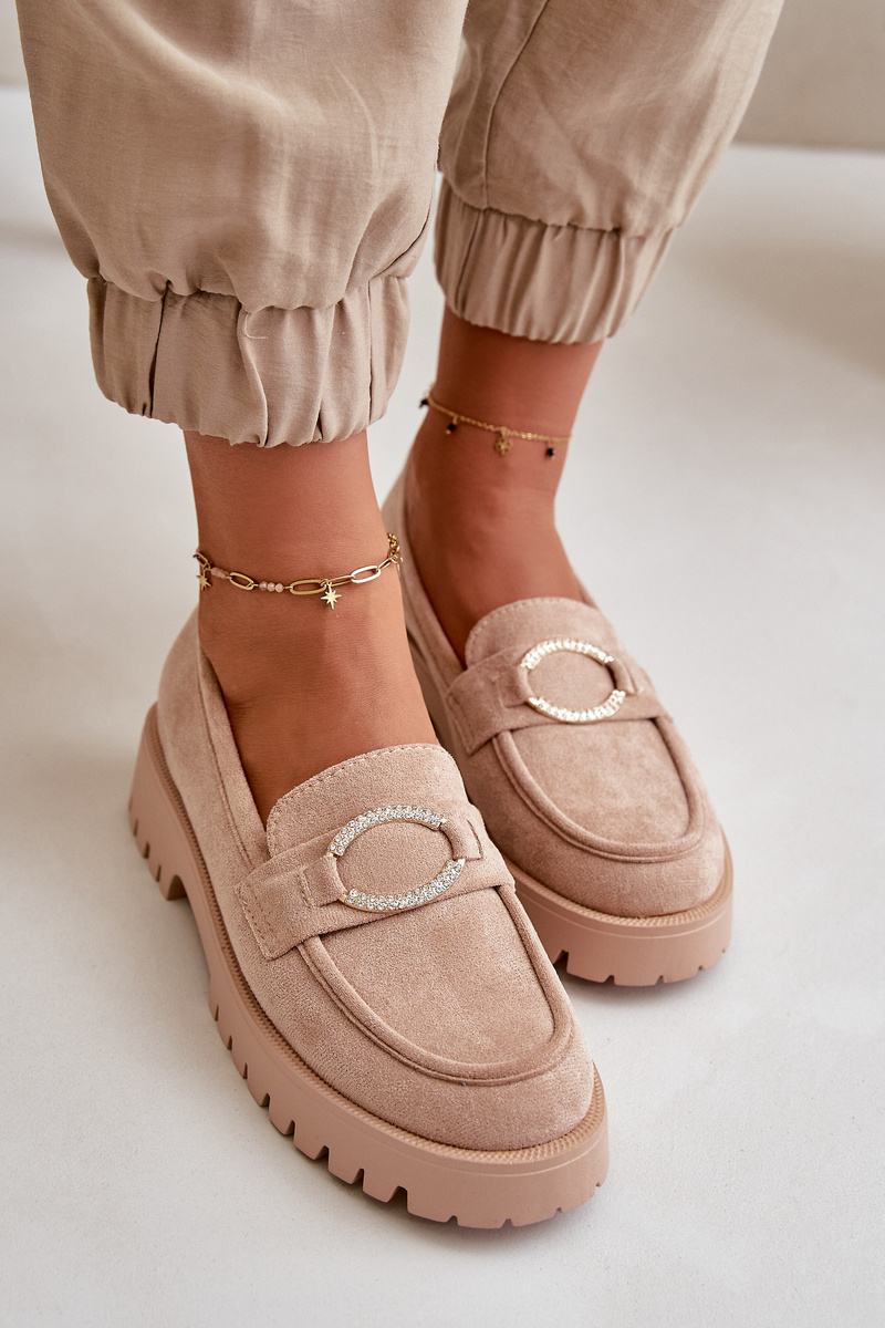 Damskie Mokasyny Z Błyszczącym Detalem Eko Zamszowe Beżowe Avellina