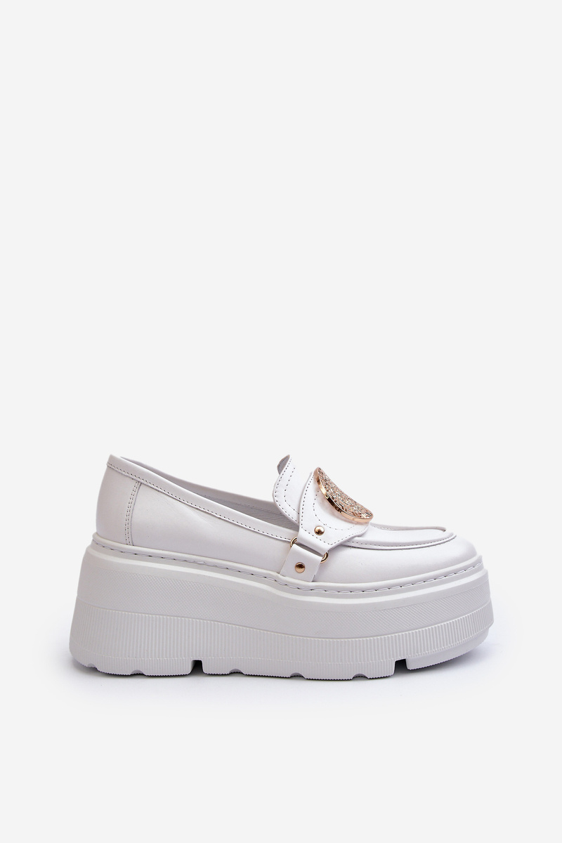 Damskie Mokasyny Z Ozdobą Skóra Naturalna Zazoo 3458 Białe