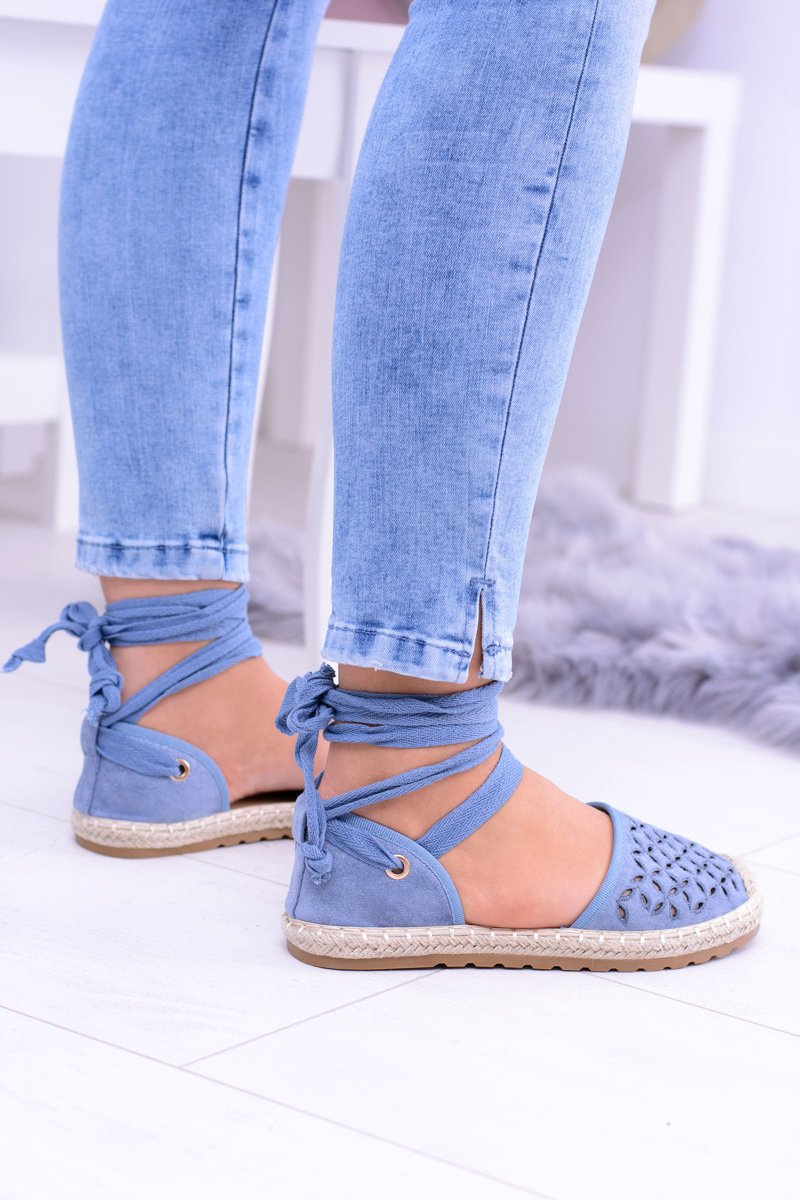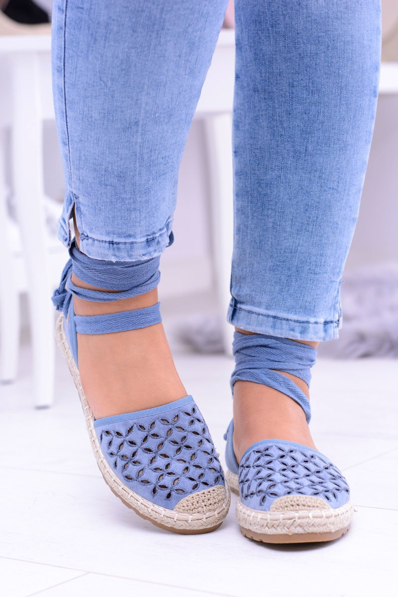 Damskie Niebieskie Balerinki Wiązane Espadryle Vasero