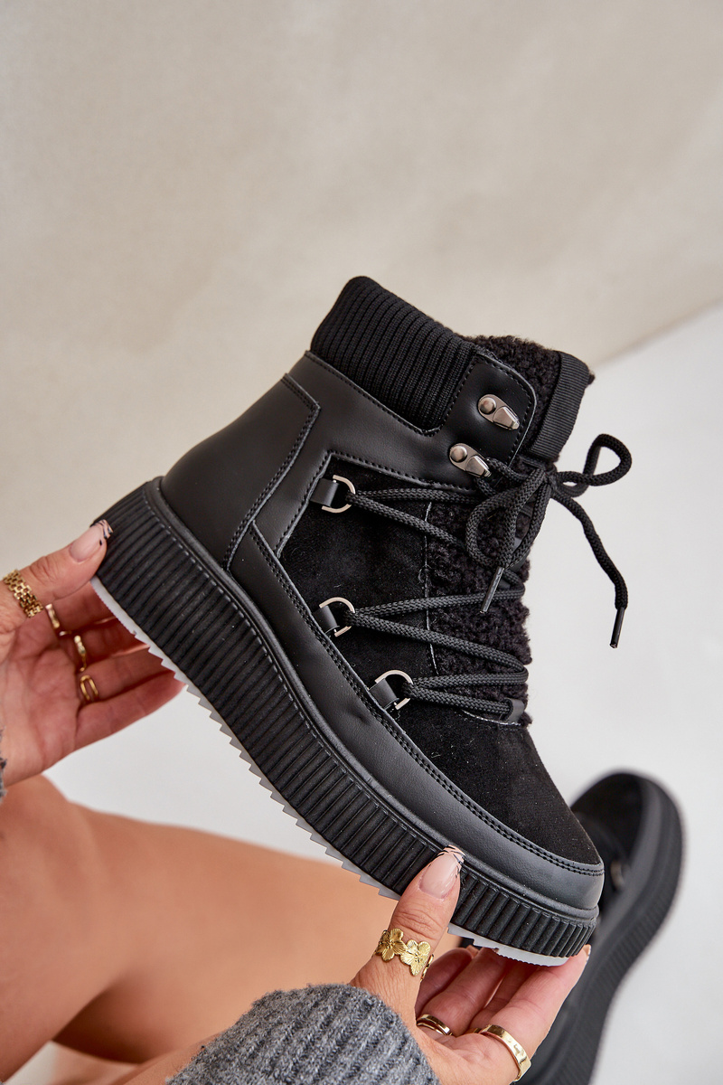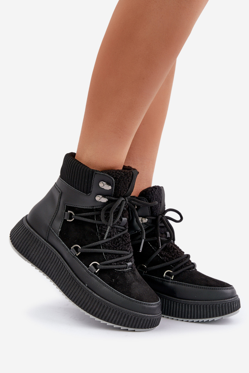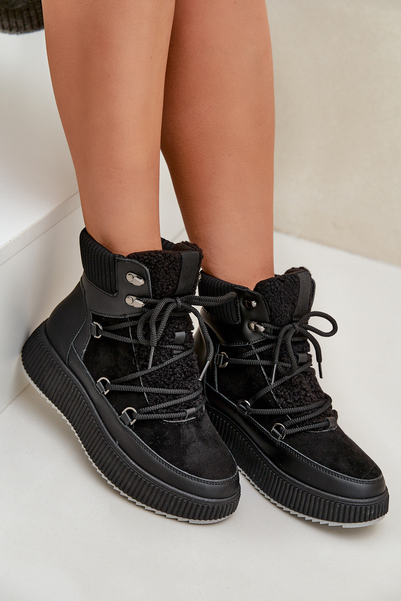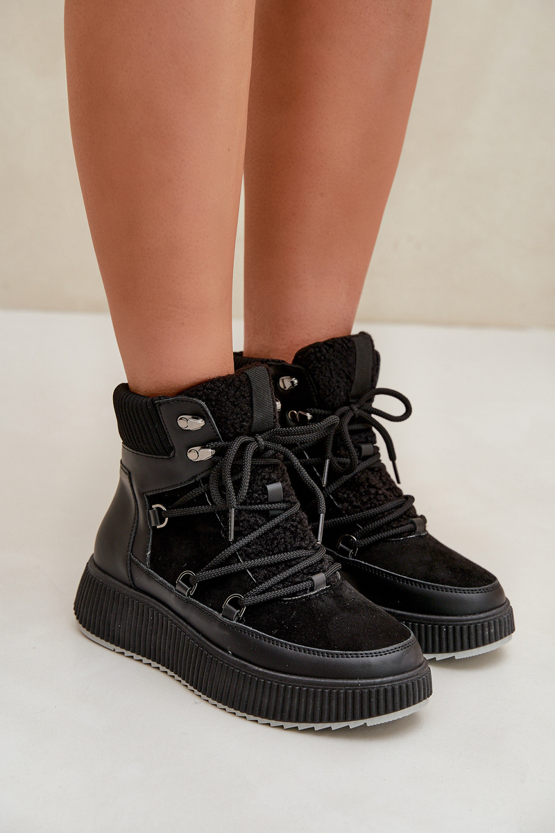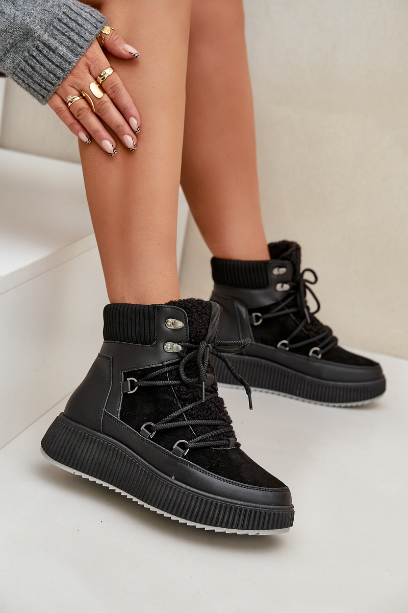 Damskie Niskie Śniegowce Na Platformie Czarne Naliora