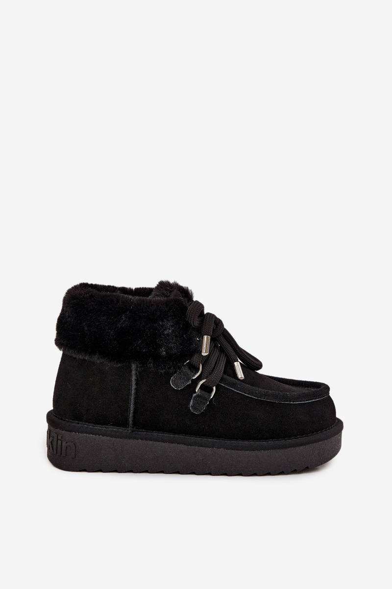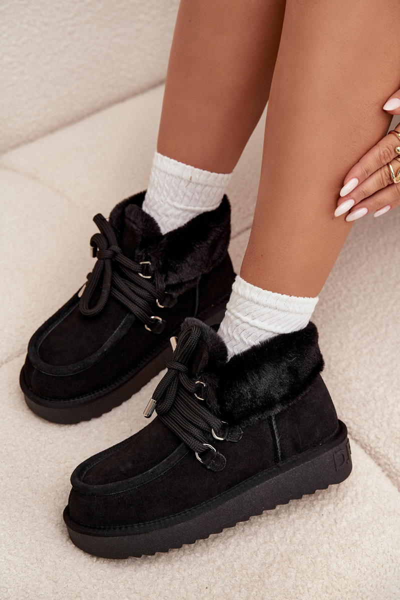 Damskie Niskie Zamszowe Śniegowce Z Futerkiem Czarne D.Franklin DFSH375006