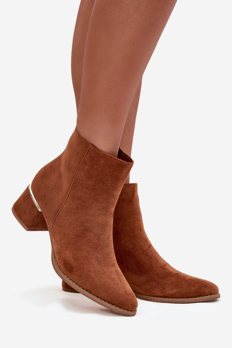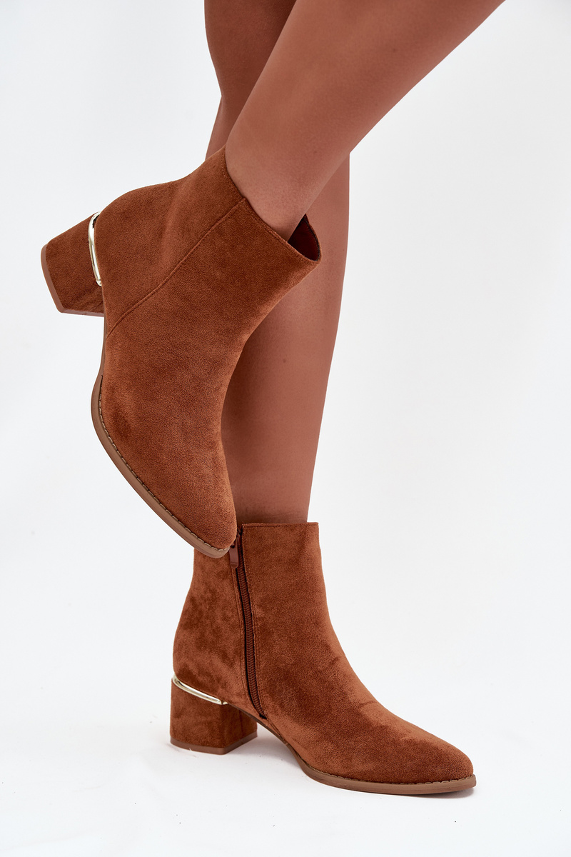 Damskie Ocieplane Botki Obcas Ze Złotym Elementem Camel Nolessa