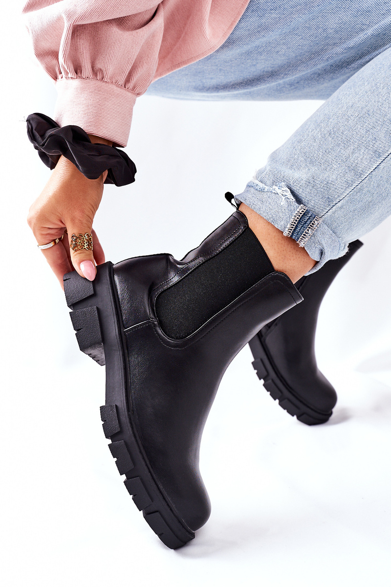Damskie Ocieplane Botki Sztyblety Czarne Roulette