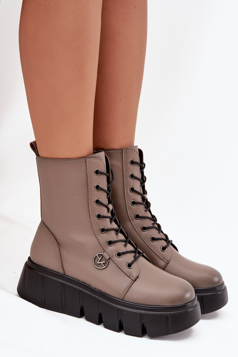Damskie Ocieplane Botki Workery Na Platformie Ciemnobeżowe Vinceza 58588