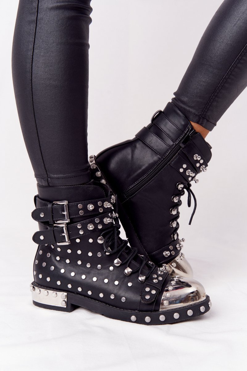 Damskie Ocieplane Botki Workery Z Dżetami Czarne Lu Boo