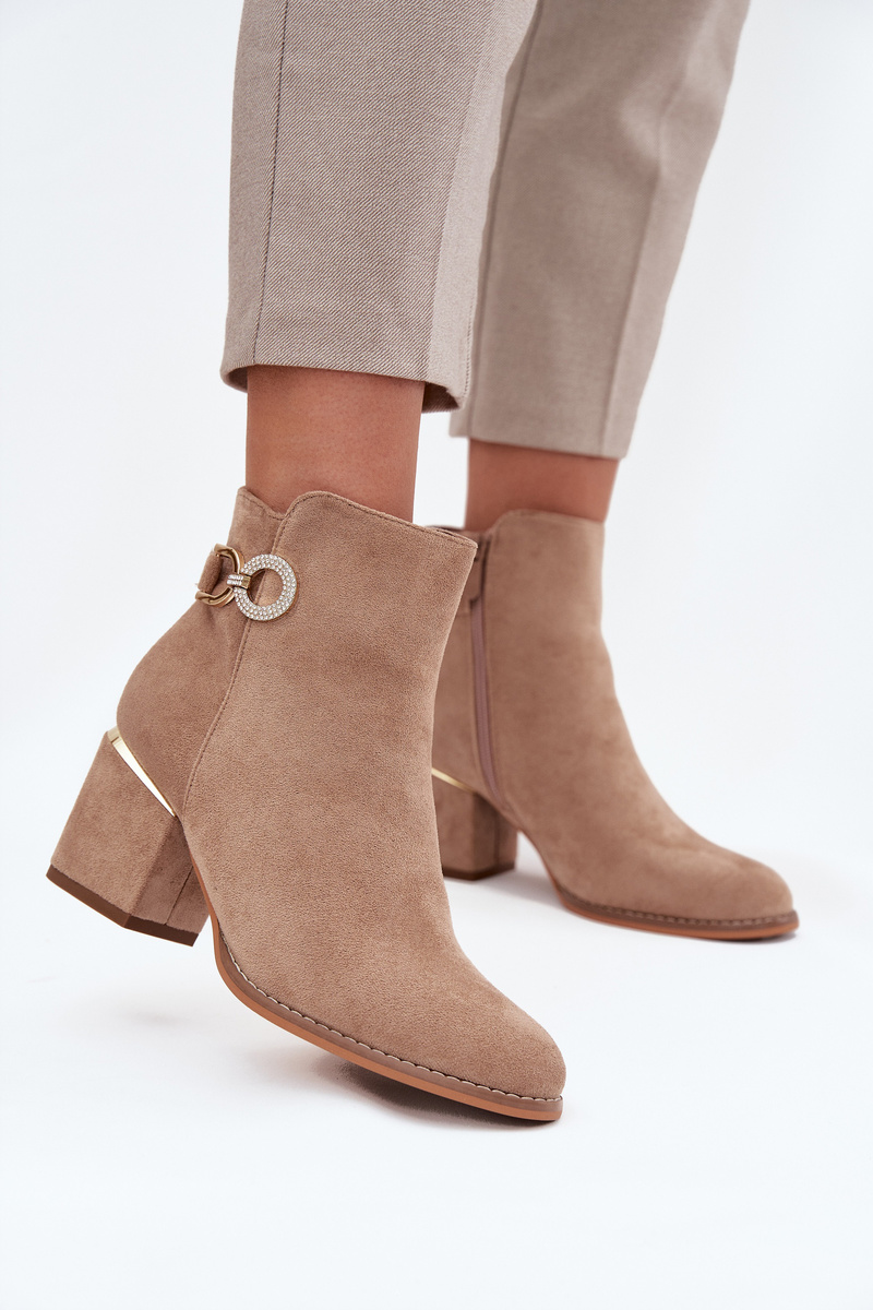 Damskie Ocieplane Botki Złote Detale Obcas Słupek Beżowe Dorisse