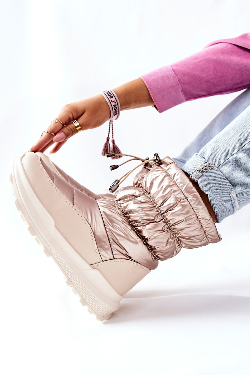 Damskie Ocieplane Śniegowce Na Suwak Złote Starbone