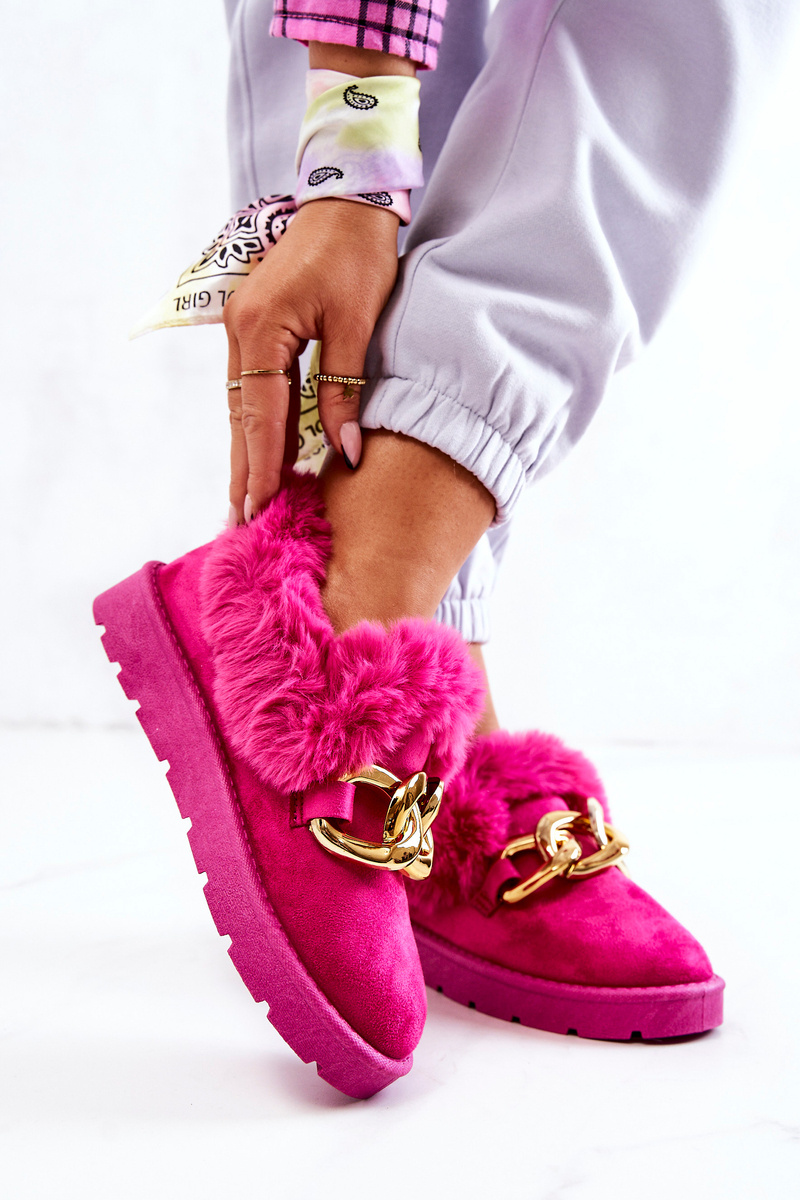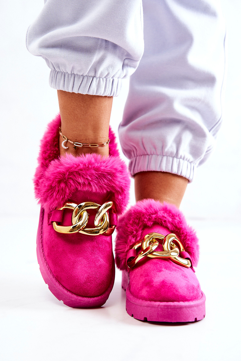 Damskie Papcie Futerko Złoty Łańcuch Platforma Fuksja Ardrums