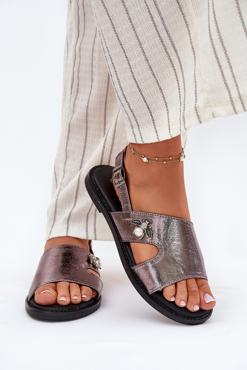 Damskie Płaskie Sandały Ozdobny Detal Srebrne Vinceza 17378