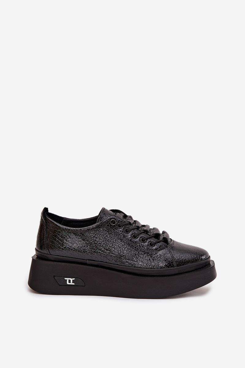 Damskie Półbuty Lakierowane Skóra Platforma Czarne Artiker 57C2041