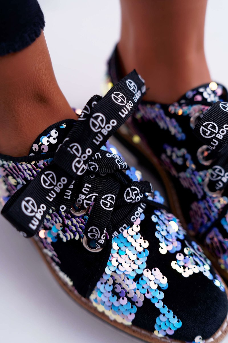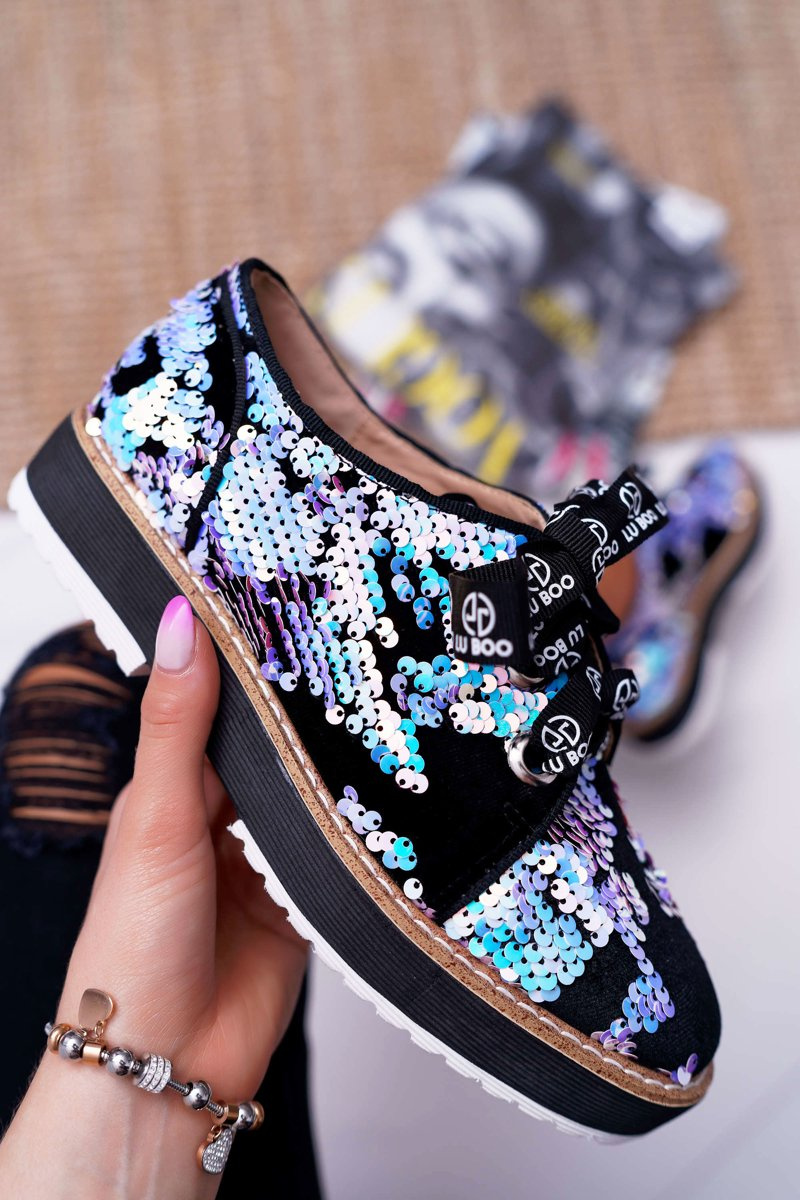 Niebanalny hit od firmy Lu Boo! Niezwykle wygodne, damskie półbuty w zwariowanej odsłonie. W całości pokryte są pięknie mieniącymi się cekinami, które sprawiają że nie można oderwać od nich oczu. Dodatkowo sznurowane są wstążkami z logiem marki Lu Boo. Te półbuty nie tylko pięknie wyglądają ale są równie wygodne. Przy wyborze rozmiaru prosimy sugerować się tabelą rozmiarów, która dostępna jest po najechaniu bądź kliknięciu w dany rozmiar.